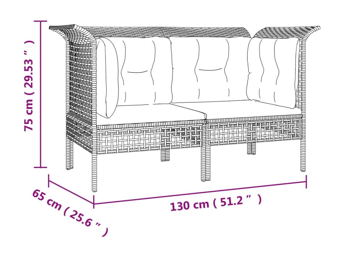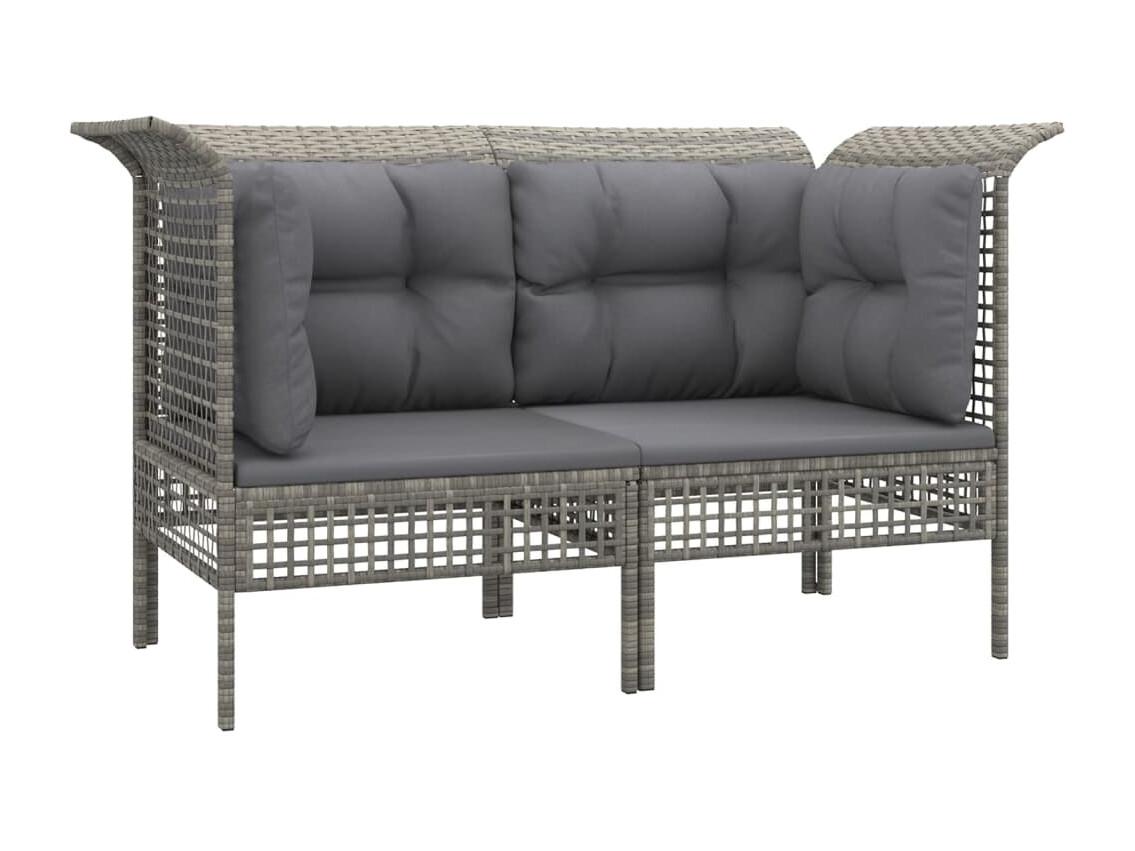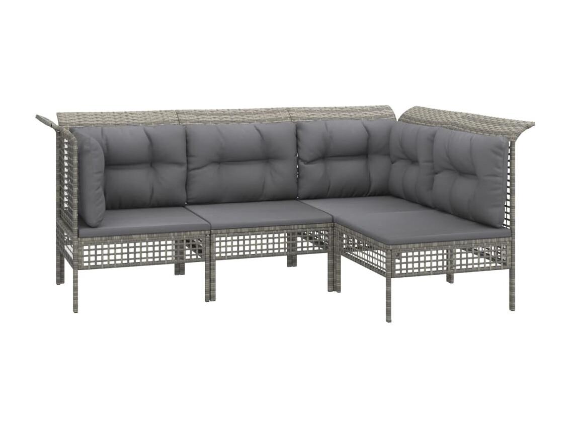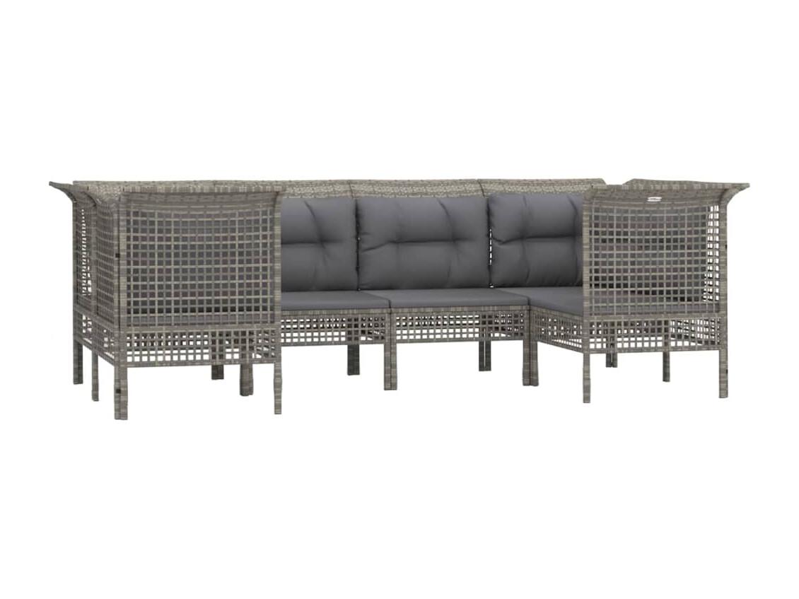 6 pcs conjunto lounge de jardim c/ almofadões vime PE cinzento