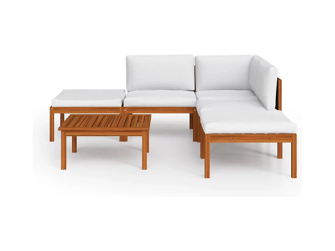Móveis de jardim móveis de exterior conjunto de móveis de 6 peças com almofadas creme madeira de acácia maciça 02_0016750