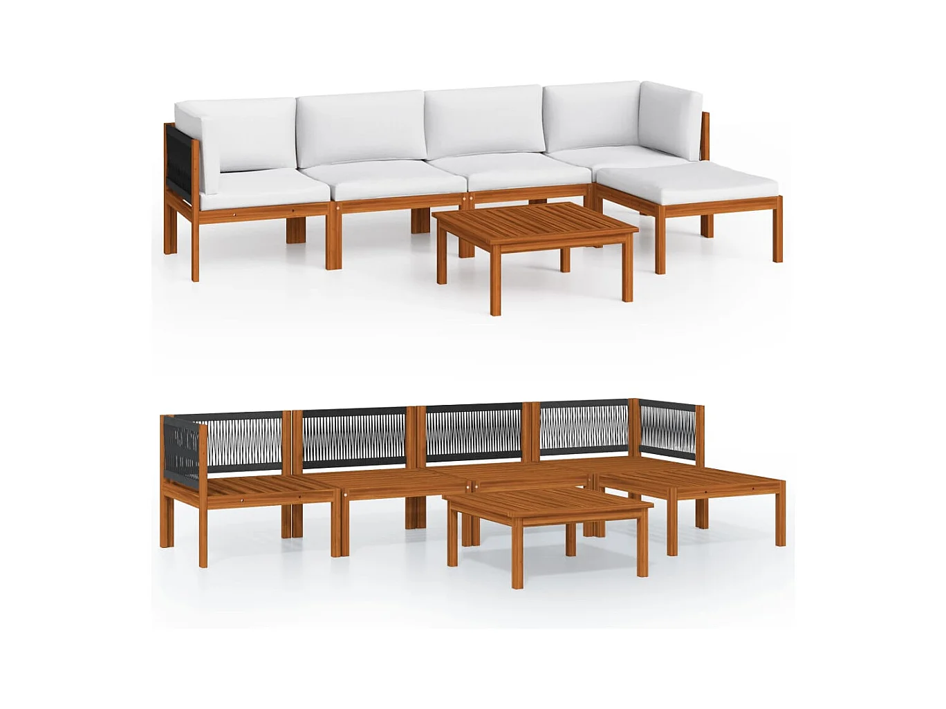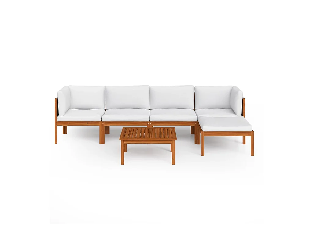 Móveis de jardim móveis de exterior conjunto de móveis de 6 peças com almofadas creme madeira de acácia maciça 02_0016748