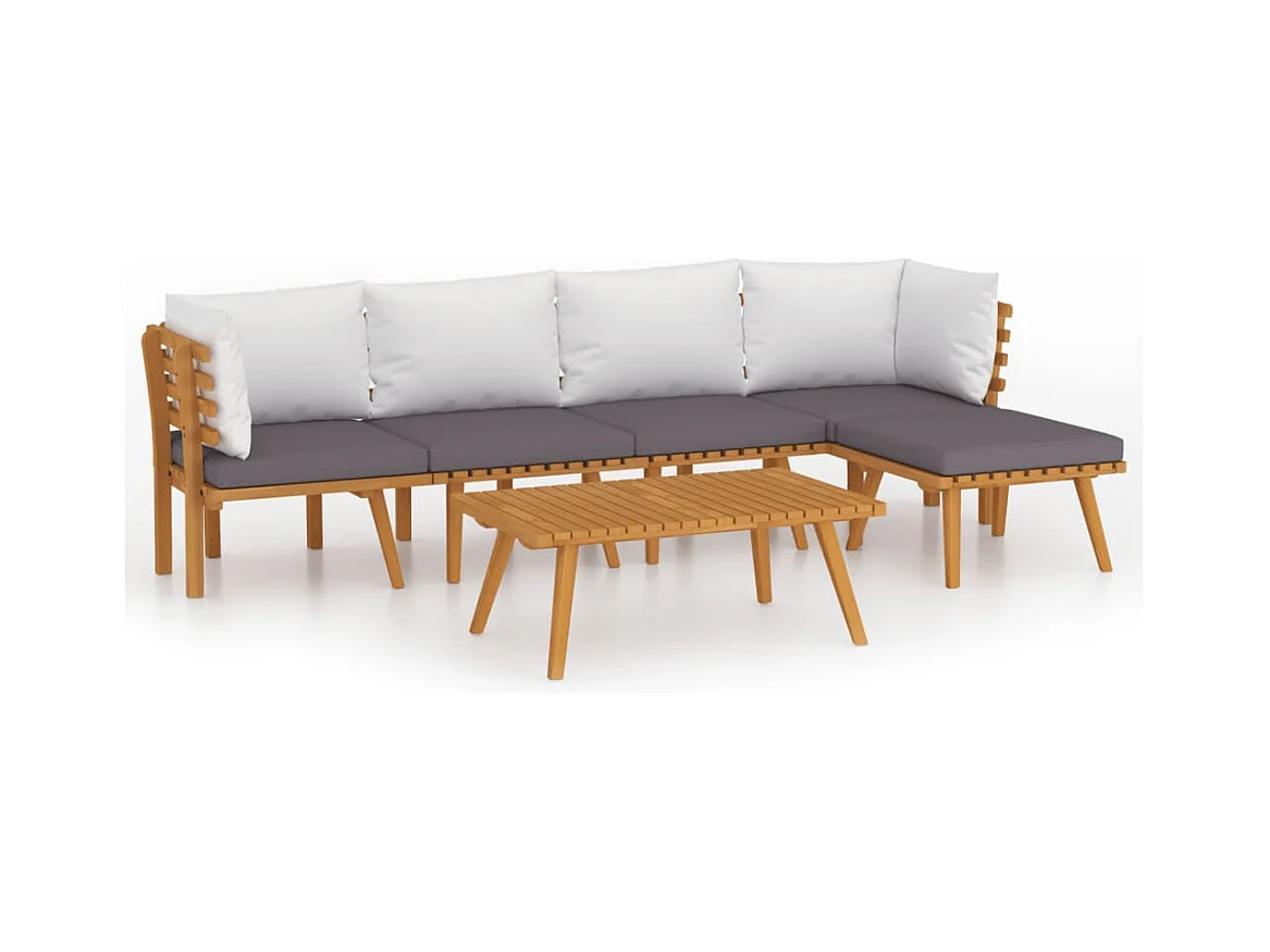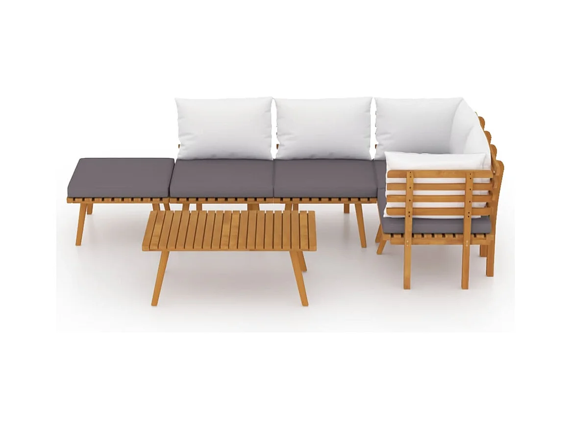 Móveis de jardim móveis de exterior Conjunto de móveis de 6 peças com almofadas madeira de acácia maciça 02_0016657