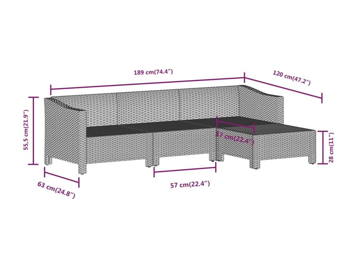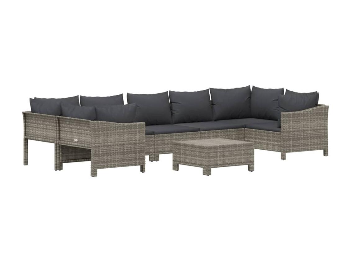 8 pcs conjunto lounge de jardim c/ almofadões vime PE cinzento