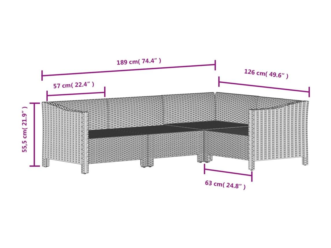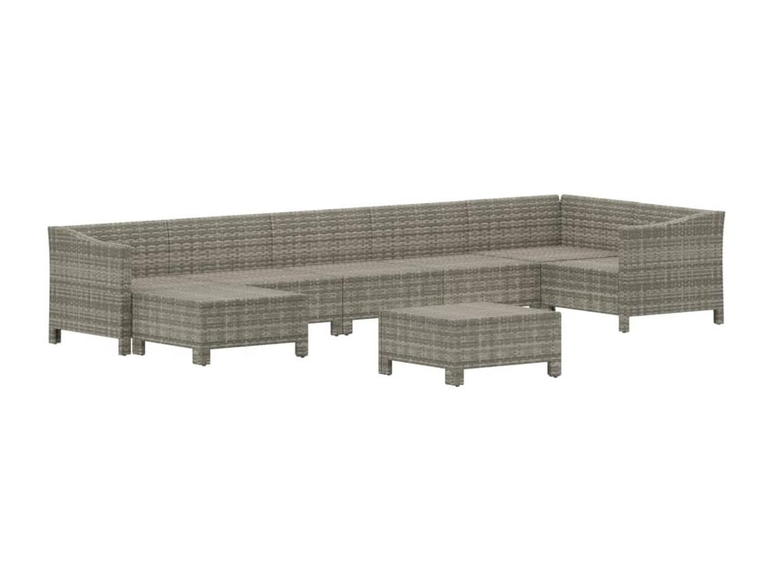8 pcs conjunto lounge de jardim c/ almofadões vime PE cinzento