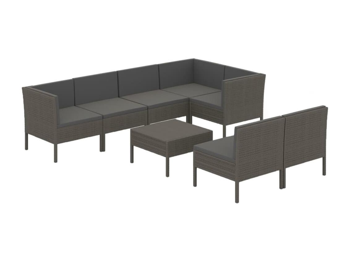 8 pcs conjunto lounge de jardim c/ almofadões vime PE cinzento