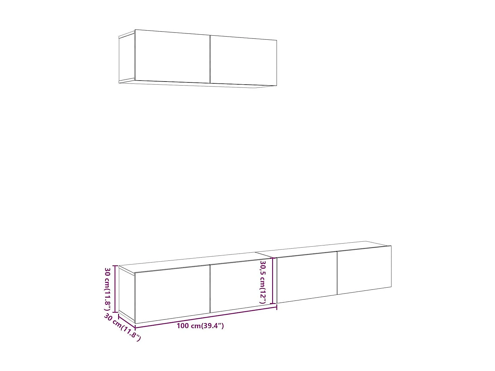 Móveis de parede para TV 3 peças madeira velha 100x30x30 cm