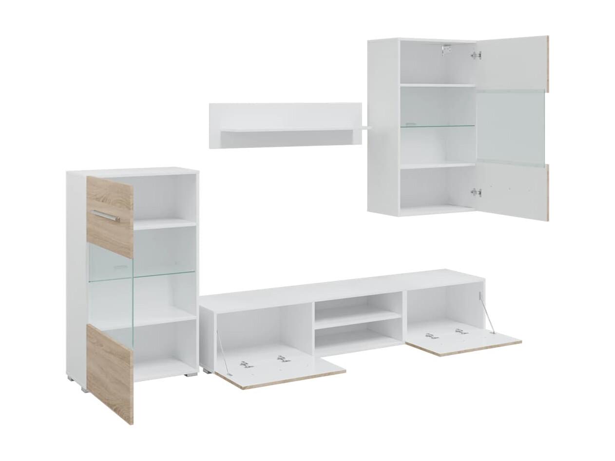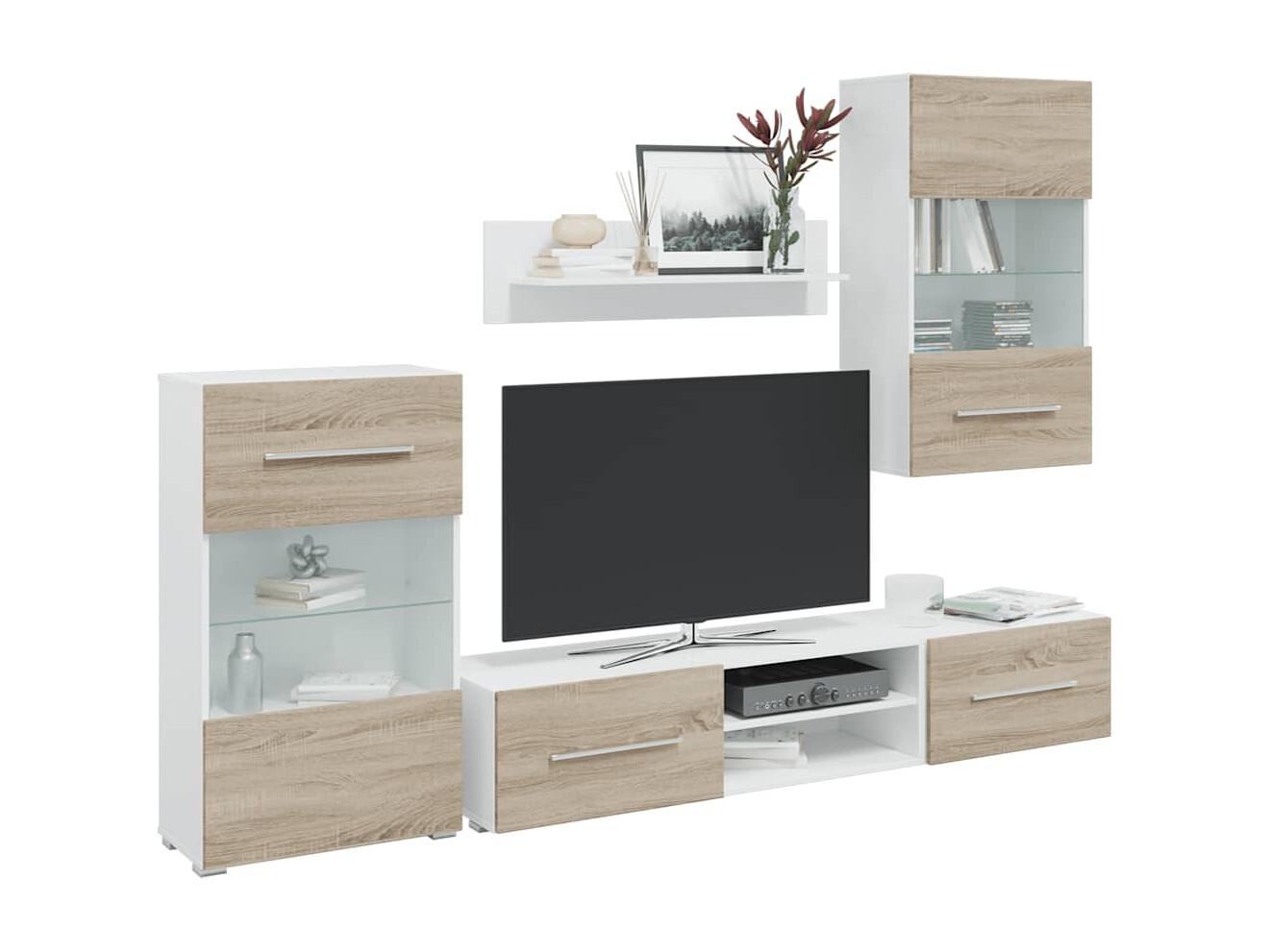 Móveis de TV de 5 peças iluminação LED madeira carvalho artesanal
