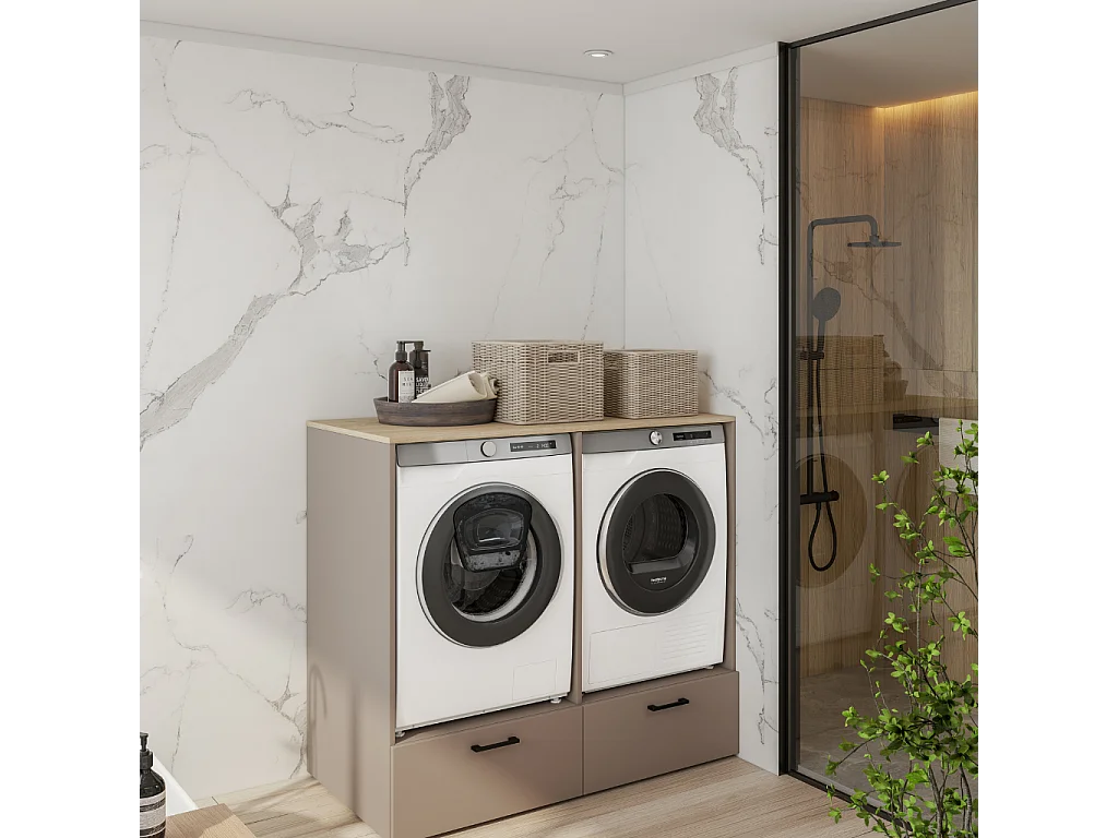 Móvel AMBIHOME AZARA 02, para 2 máquinas de lavar, c/gaveta