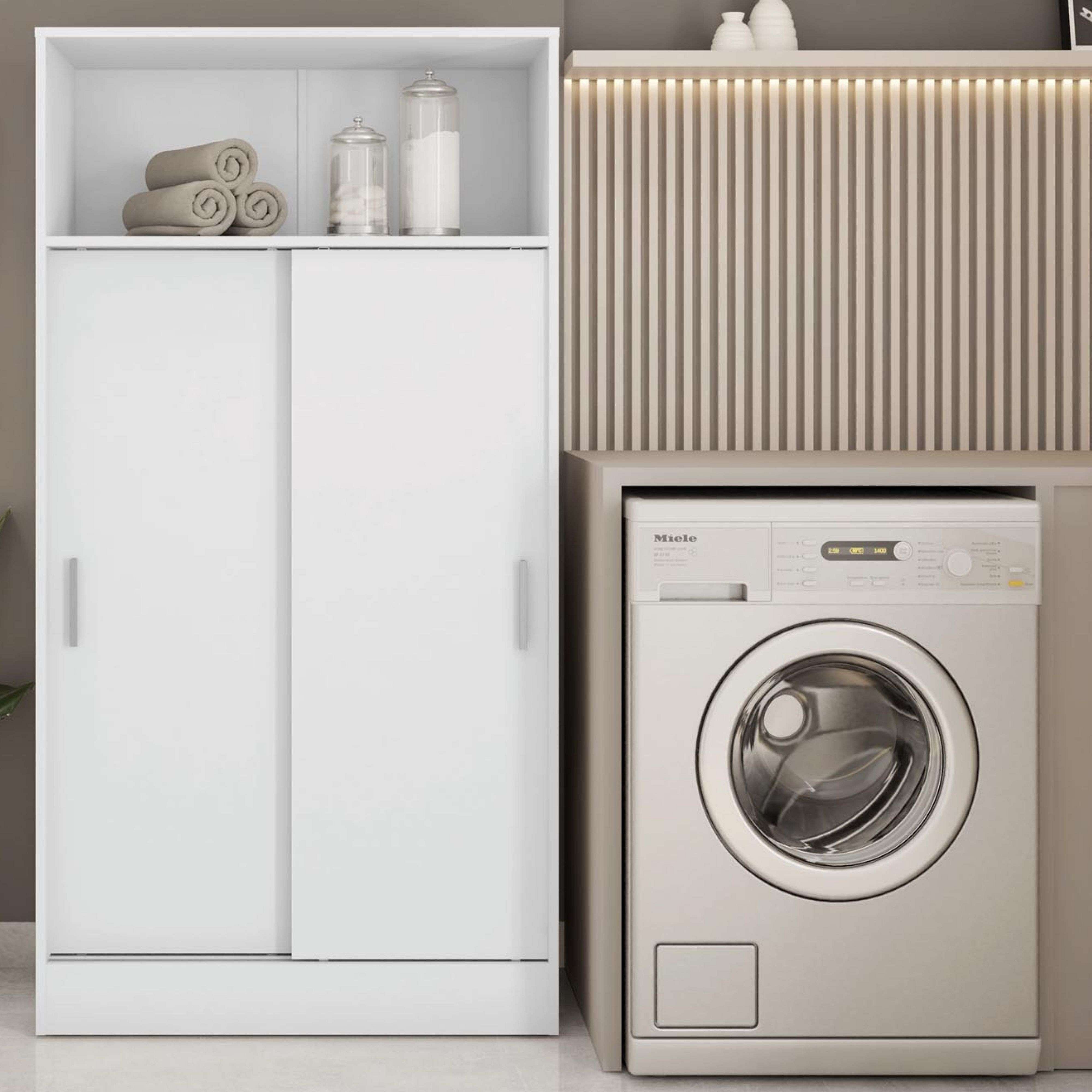 Móvel auxiliar de casa de banho com 2 portas de correr, melamina branca, 81x157 cm
