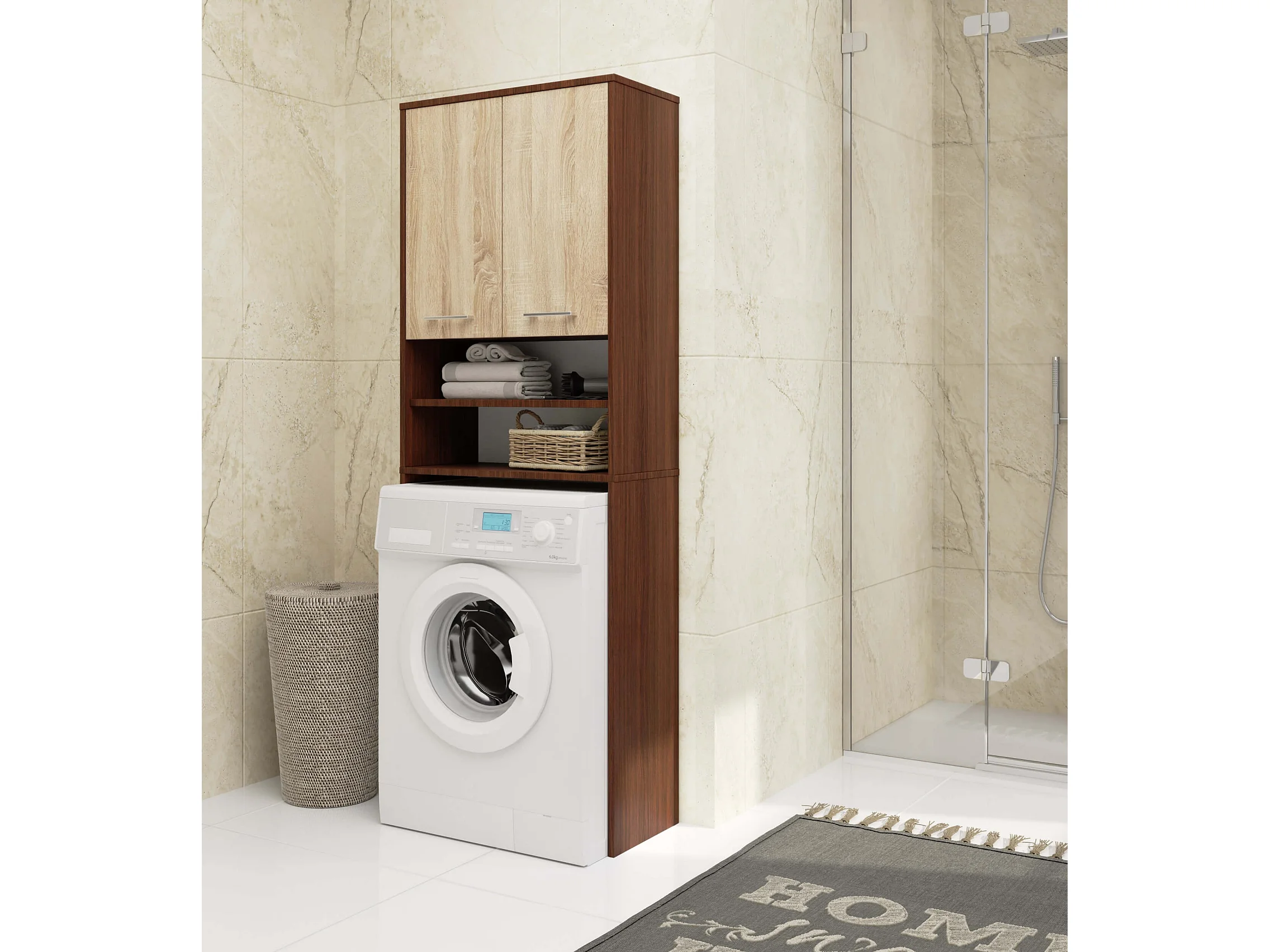 Armário de banheiro sobre a máquina de lavar e secar, coluna de prateleira embutida carvalho Lancelot.