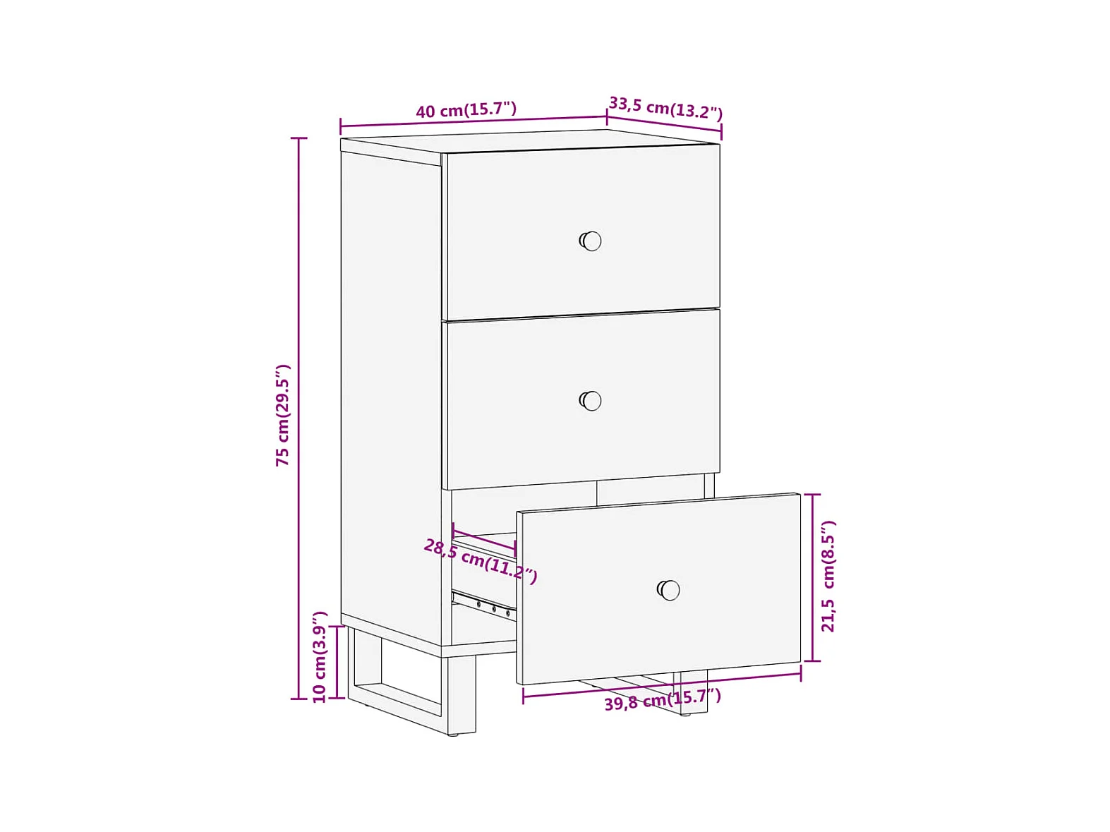 Móvel de apoio 40x33,5x75 cm mangueira maciça castanho e preto