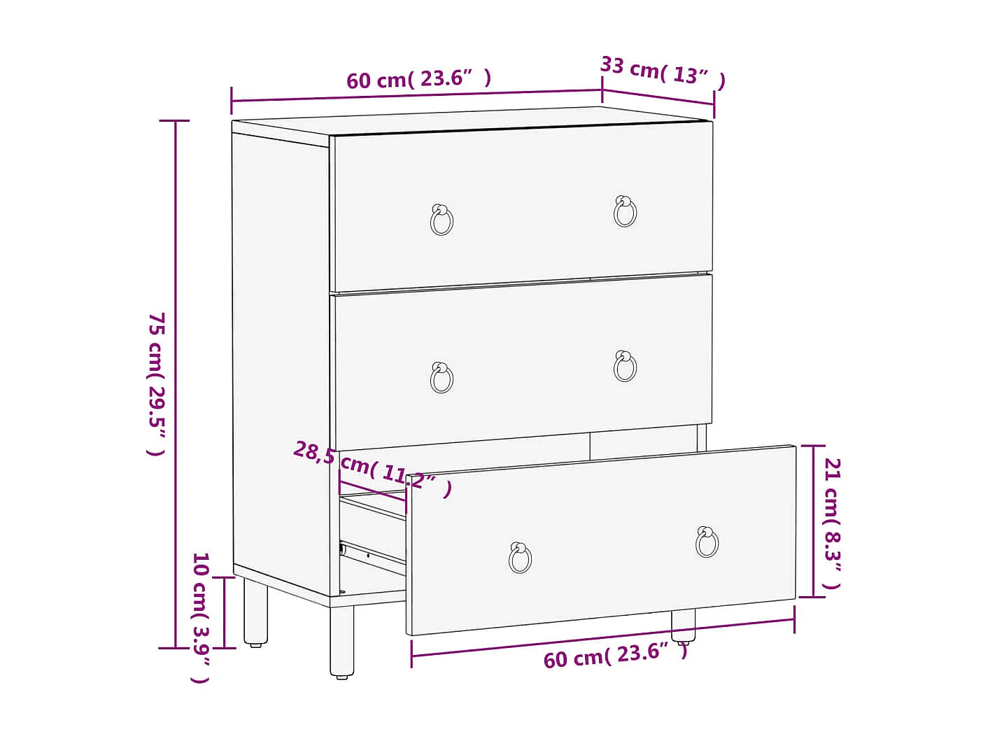 Aparador 60x34x75 cm madeira de pinho maciça