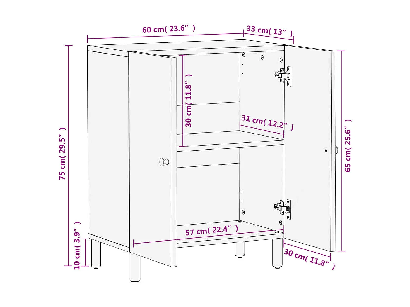 Aparador preto 60x33x75 cm madeira trabalhada