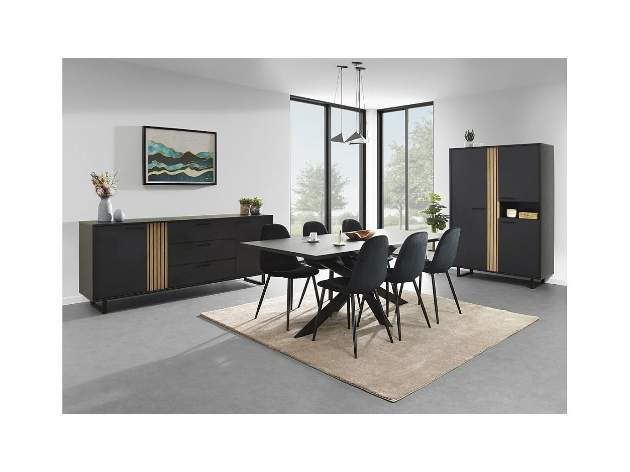 Armário de porcelana 2 portas 3 gavetas Lyam madeira e preto 191cm