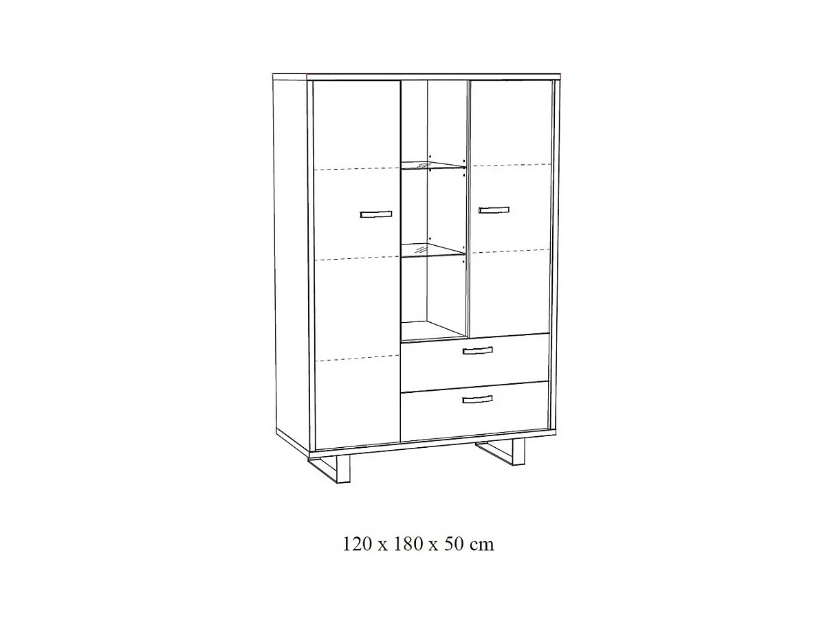 Vitrine, armário para pratos, aparador MILO. Cores em carvalho e acabamentos em preto. Móvel ideal para a sua sala de jantar.
