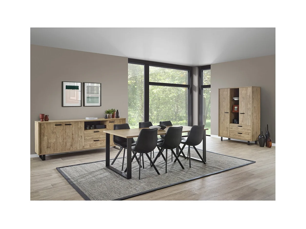 Aparador na cor carvalho da coleção MILO. Acabamento em preto. Móvel ideal para a sua sala de jantar.