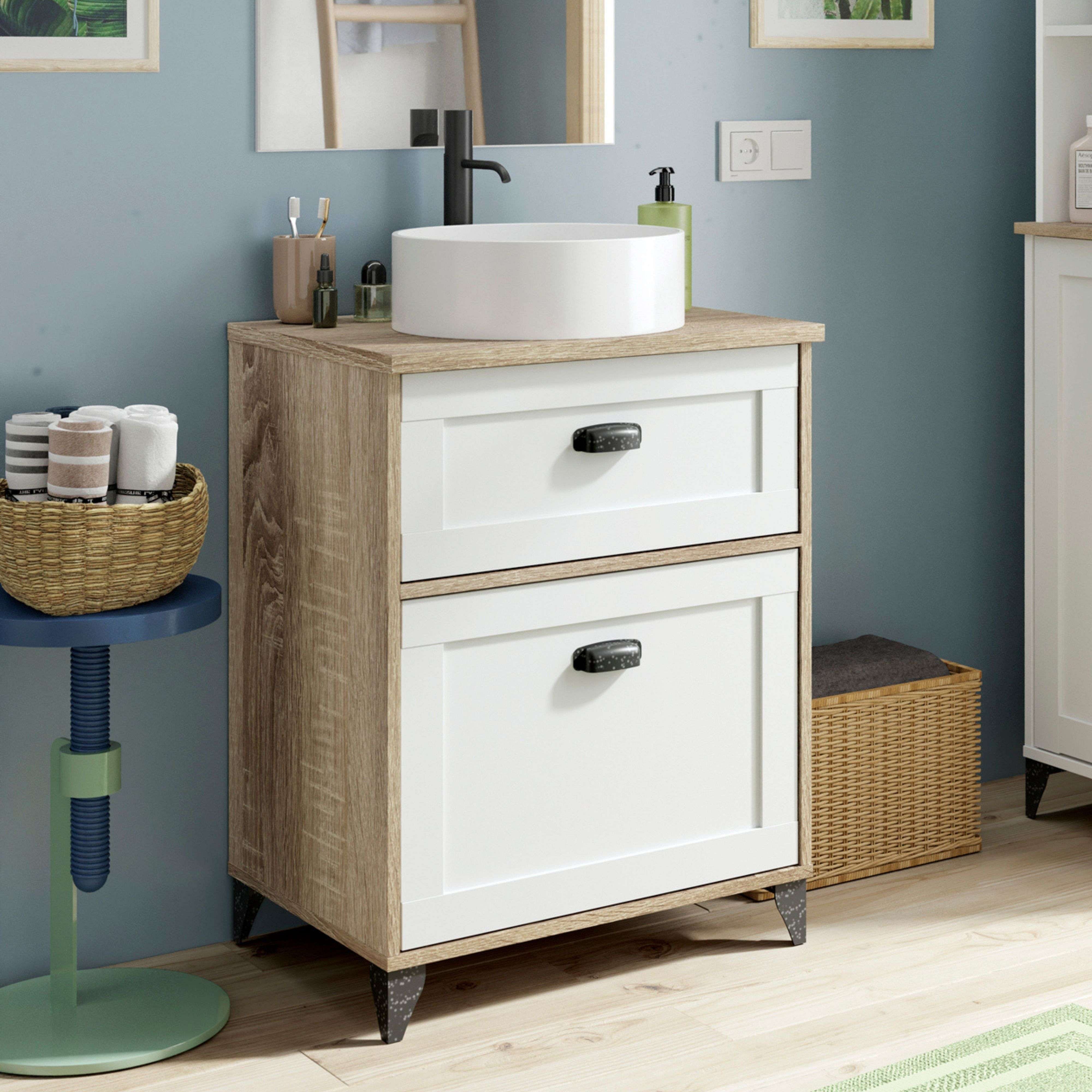 Móvel de banheiro 60 cm Toscana 2 gavetas branco nórdico e carvalho cambriano