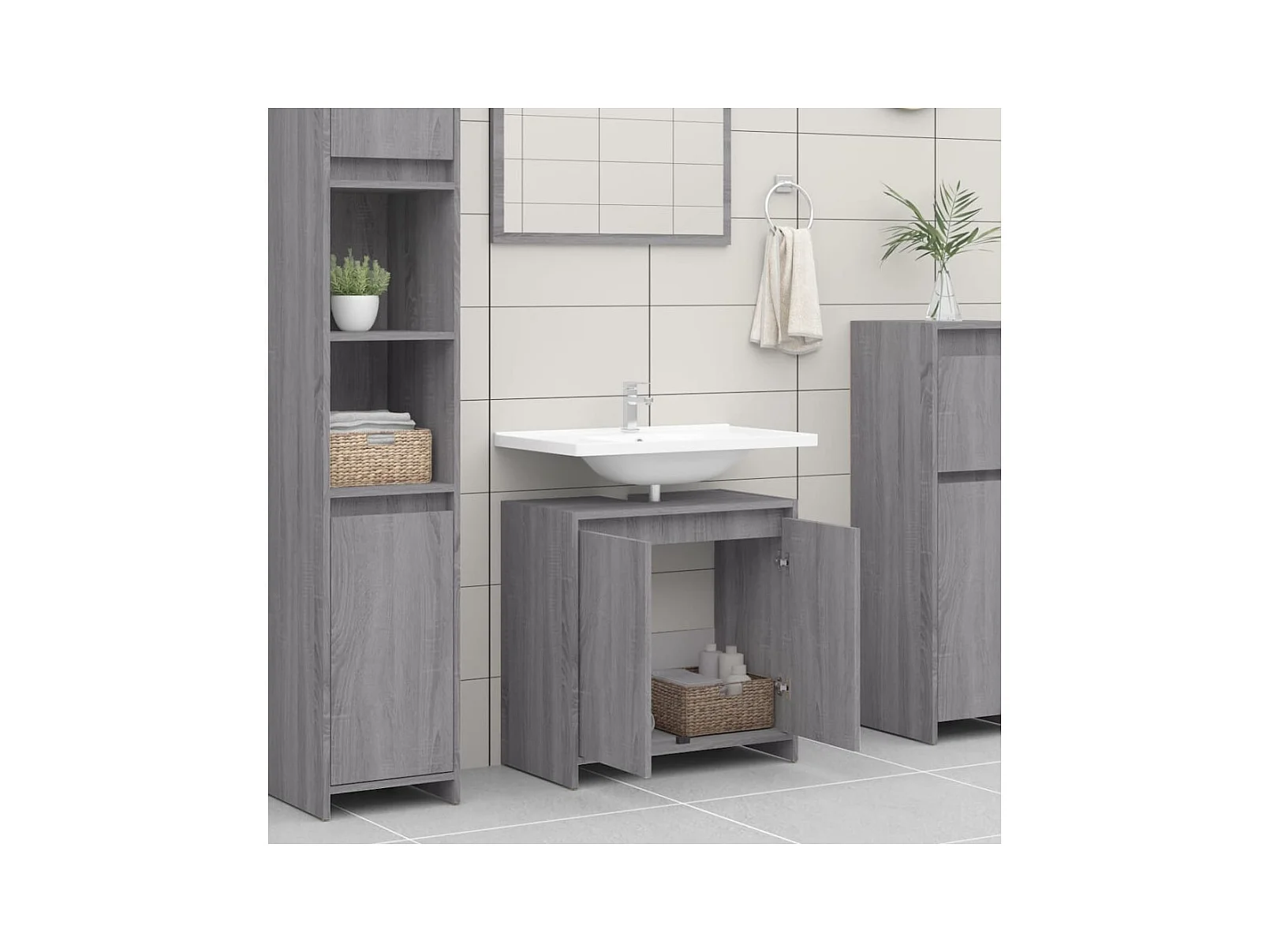 Móvel de banheiro cinza Sonoma 60x33x61 cm Madeira trabalhada
