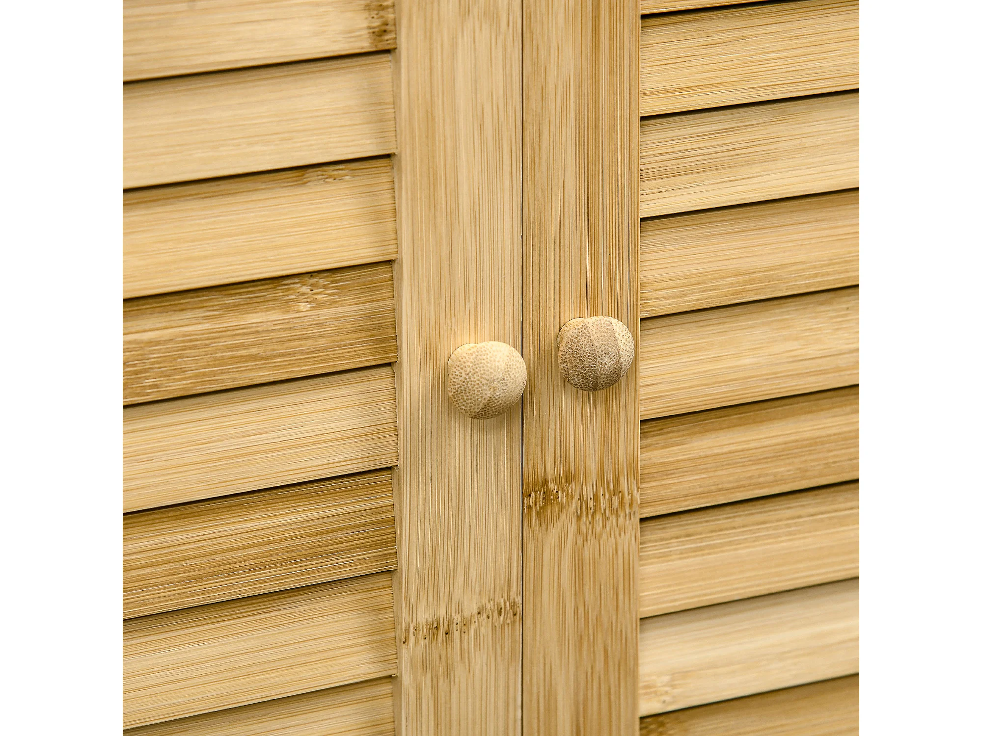 Móvel de banheiro de 3 níveis em bambu e MDF com portas venezianas 50x25x92cm