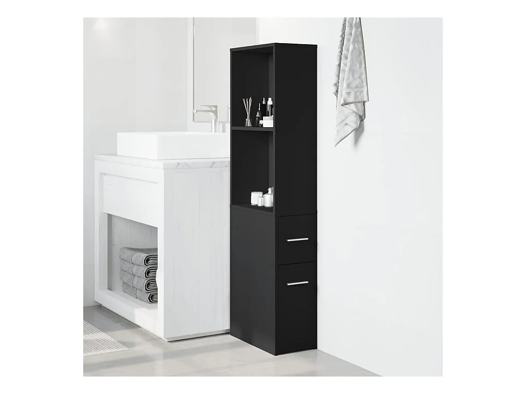 Móvel de banheiro estreito com rodízios pretos