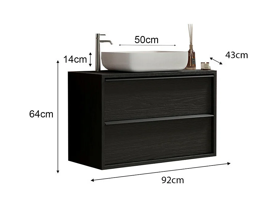 Móvel de banheiro suspenso com pia e 2 gavetas, comprimento 92cm, coleção FRASSI. Cor preto cinza.