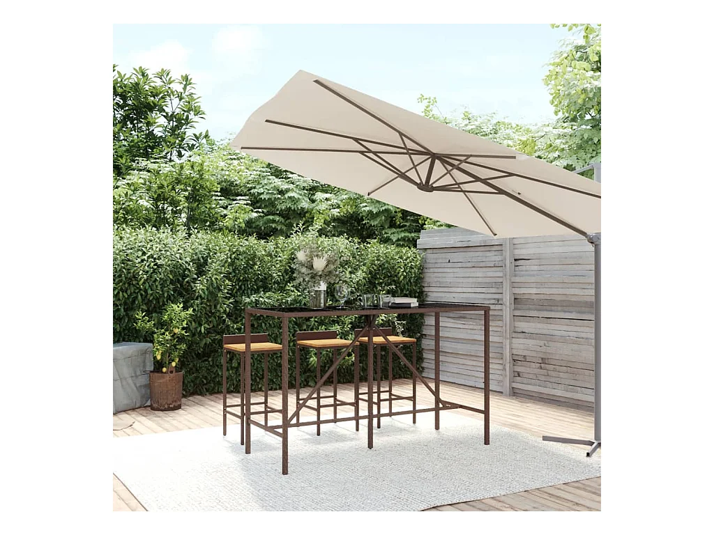 Móvel de bar com tampo de vidro 110x70x110 cm vime PE castanho PT845799