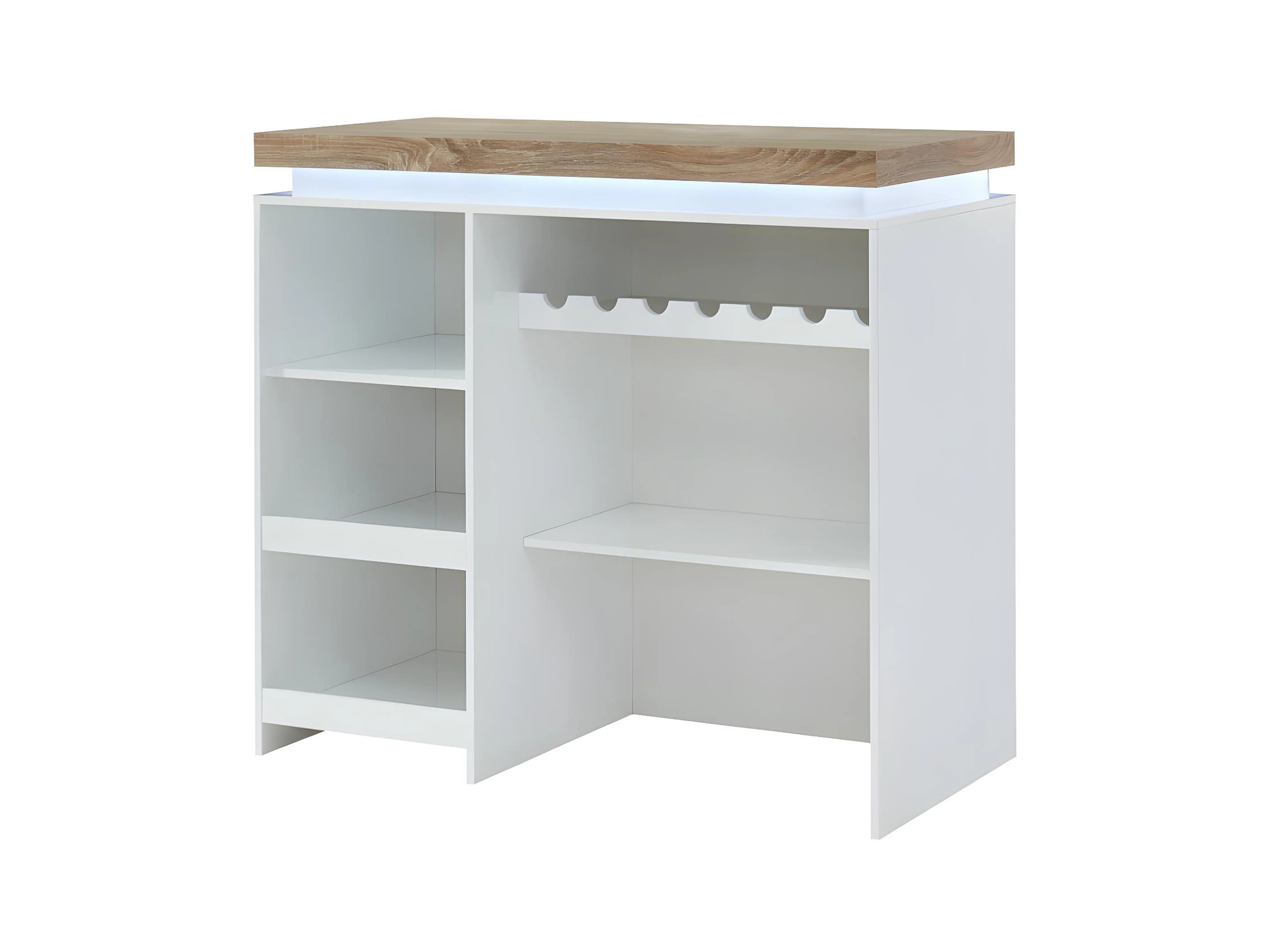 Móvel de bar em MDF lacado a branco a LEDs de cor Branco e carvalho - HALO II