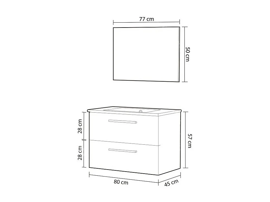 Móvel de casa de banho Aruba 2 gavetas + espelho Cemento