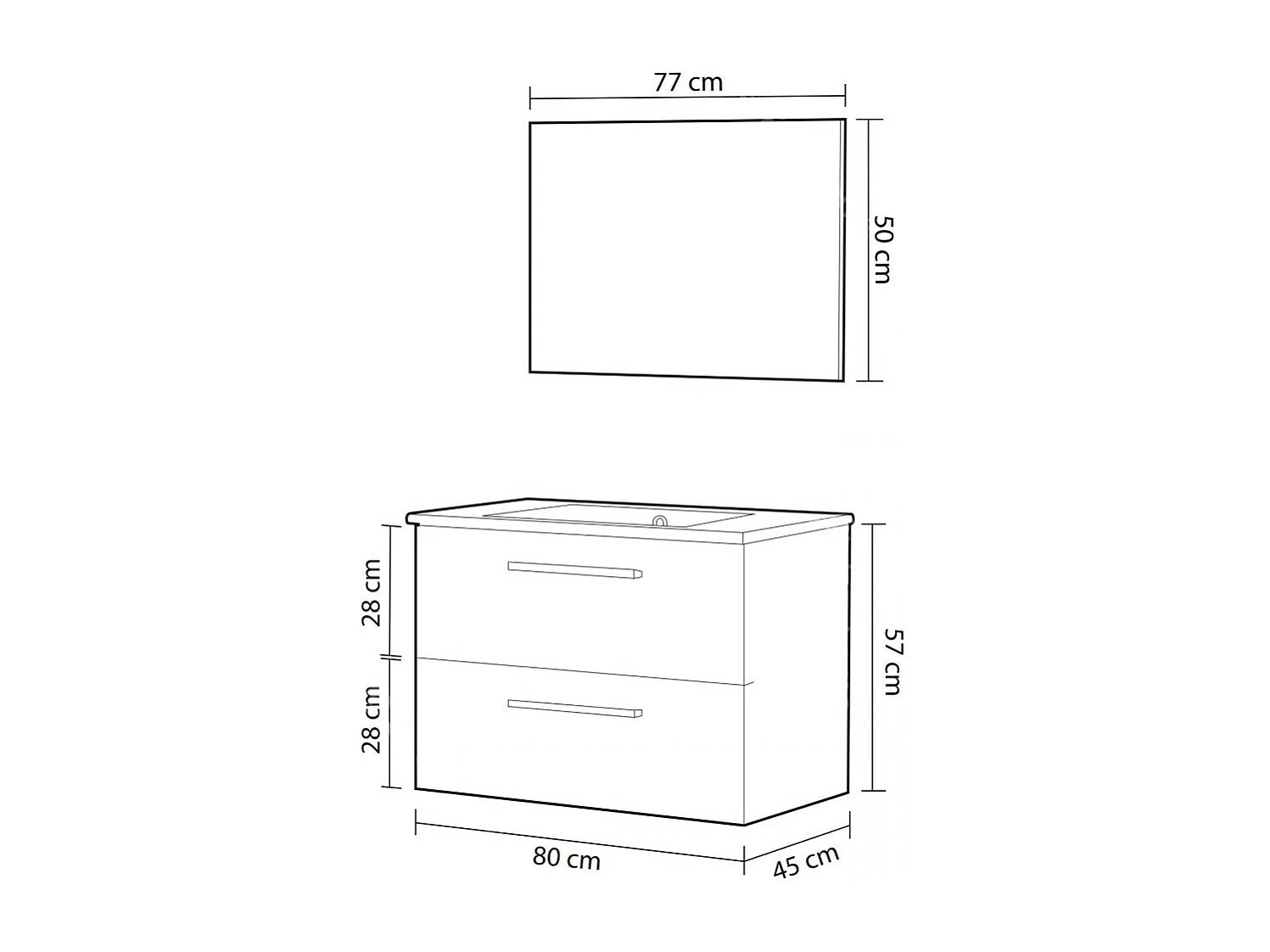 Móvel de casa de banho Aruba 2 gavetas + espelho