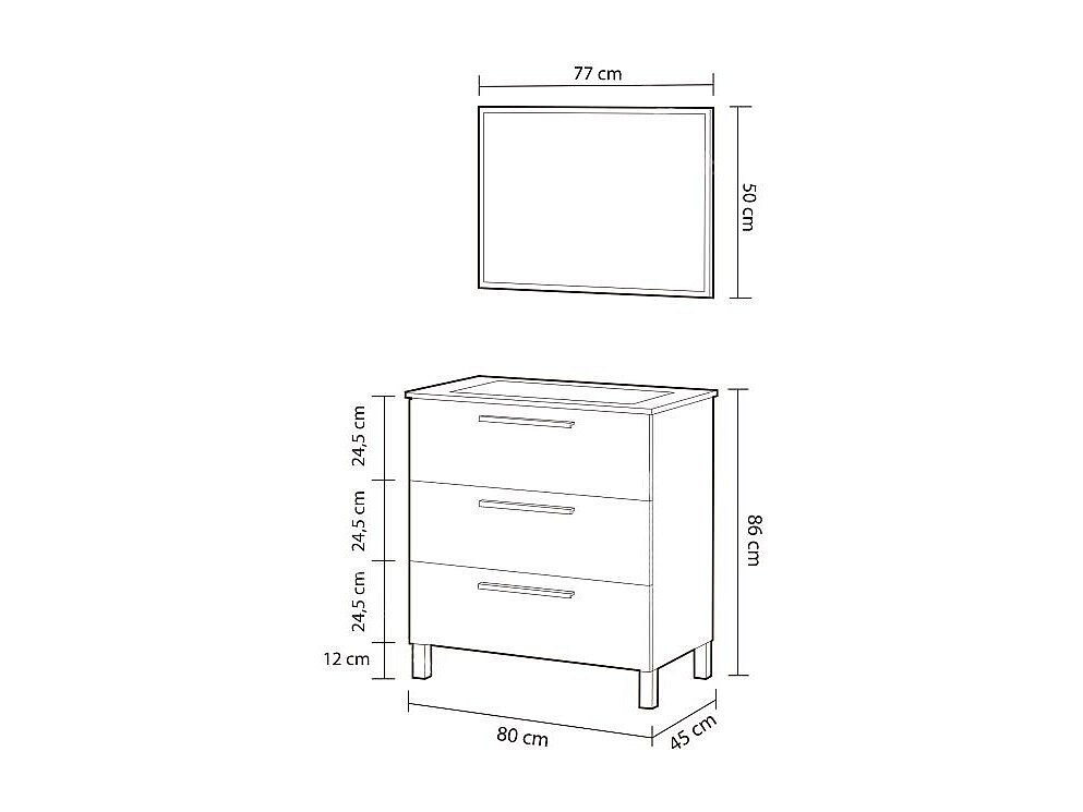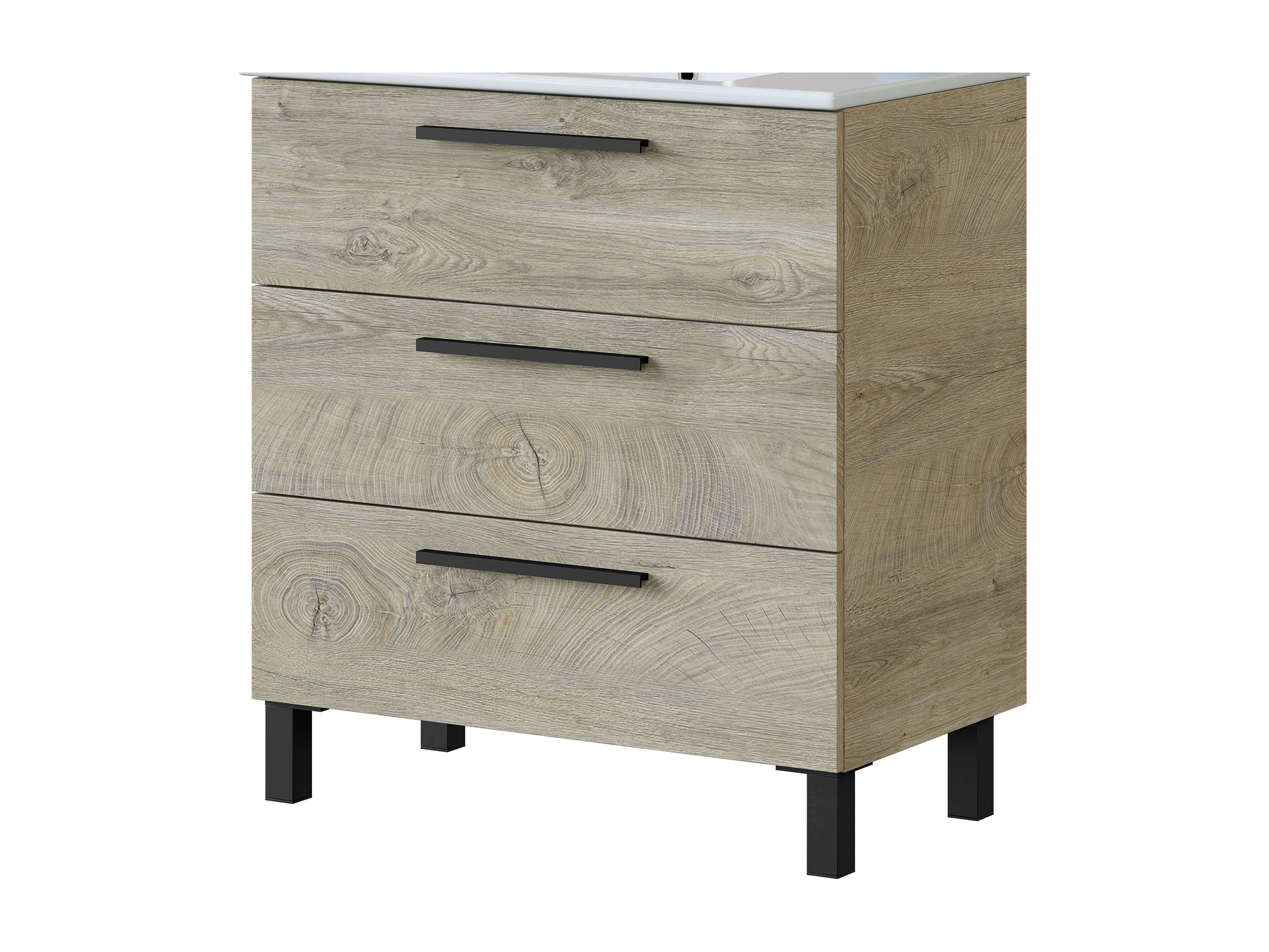 Móvel de casa de banho Athena 80 3 gavetas + espelho Roble Alaska