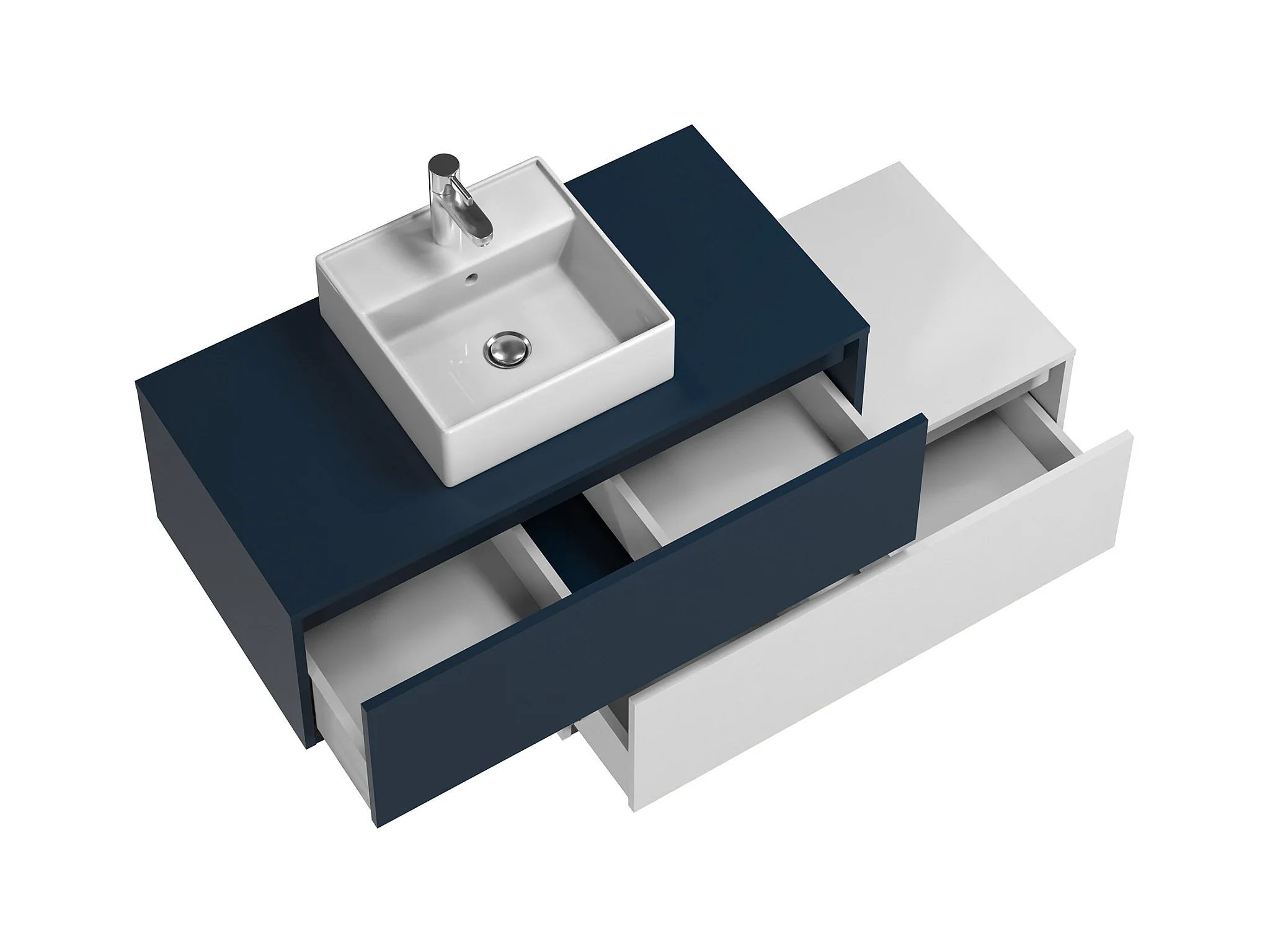 Móvel de casa de banho suspenso azul-escuro e branco lavatório individual e duas gavetas - TEANA II