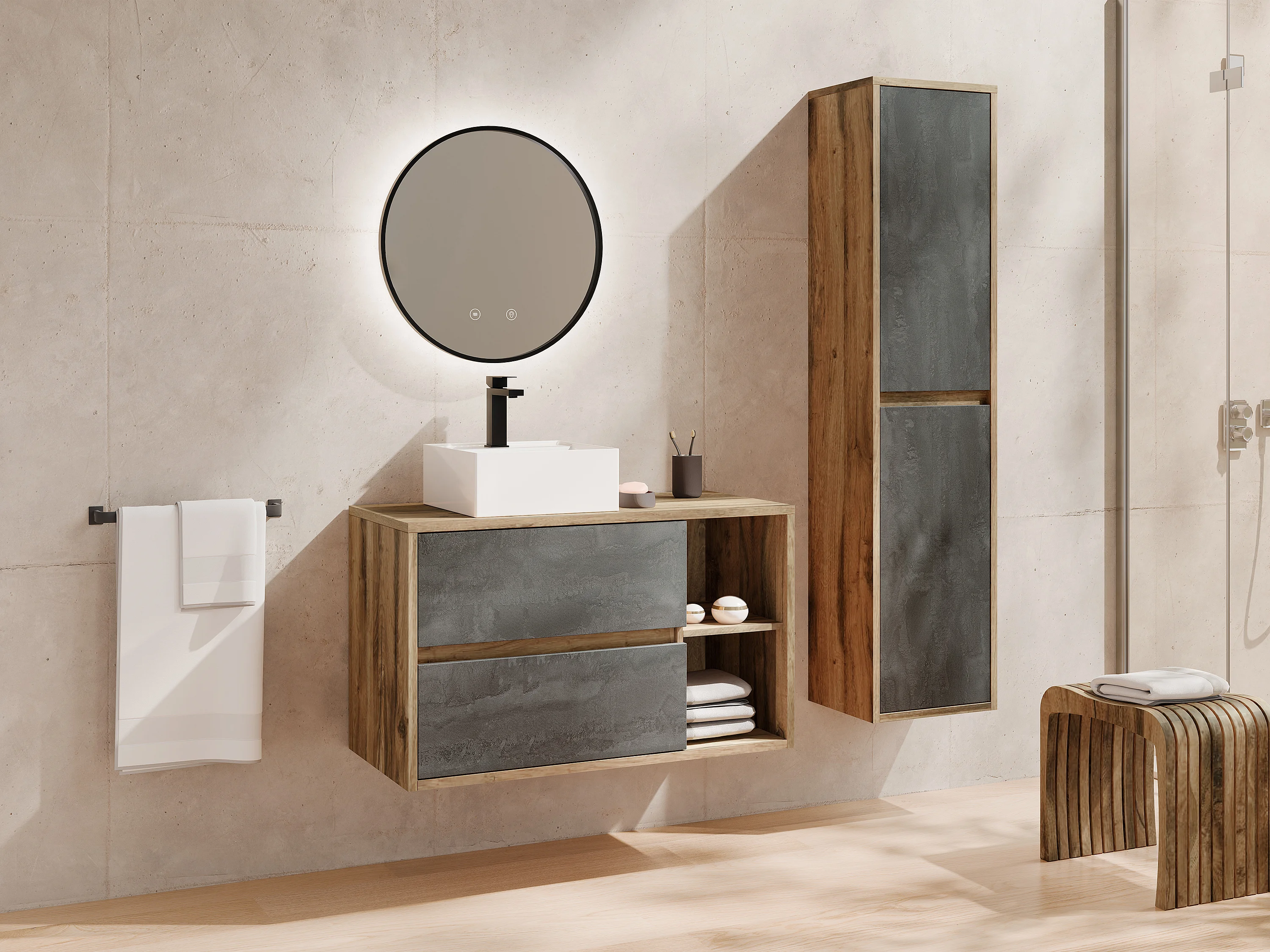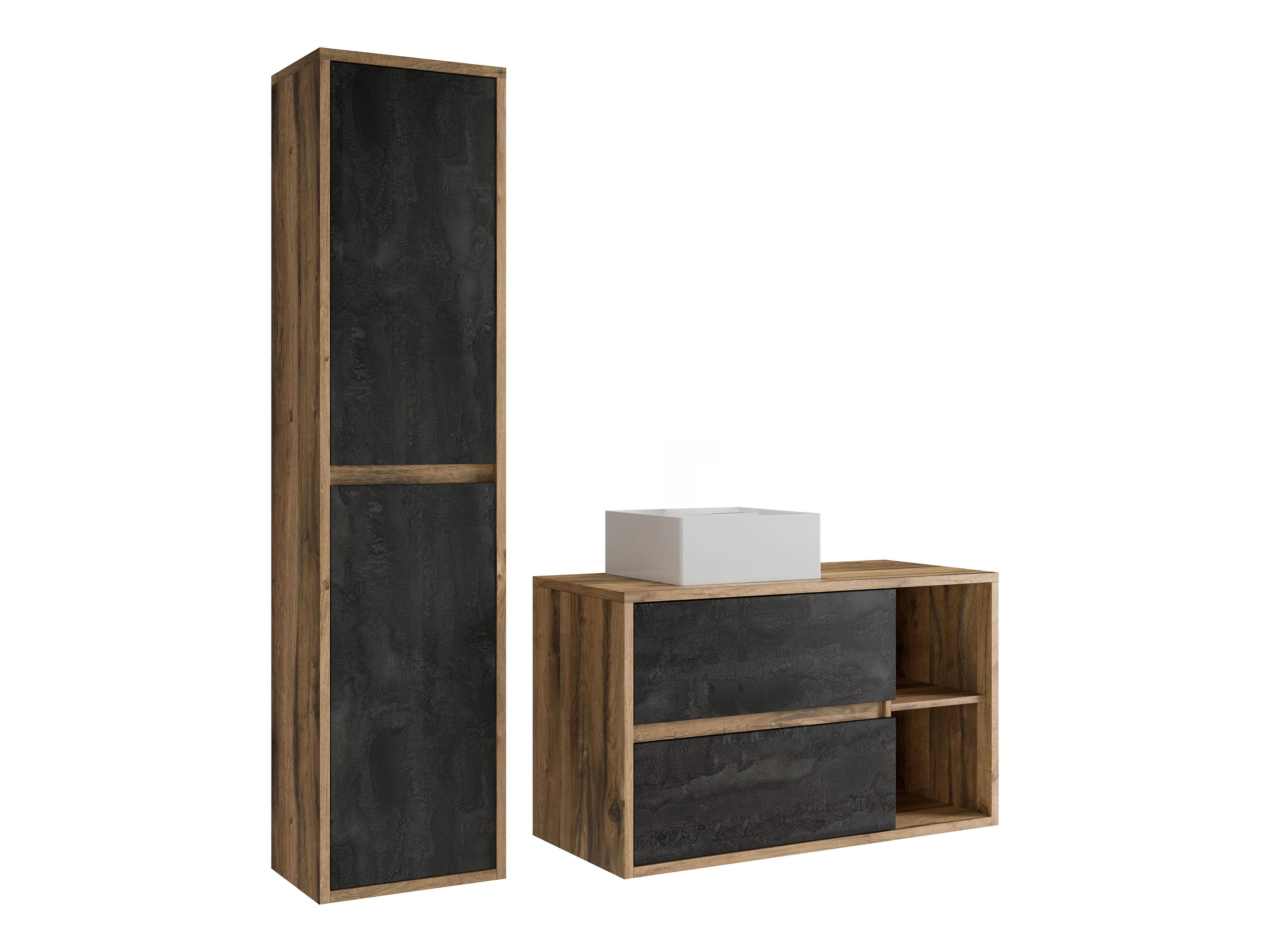 Móvel de casa de banho suspenso com lavatório e coluna cor natural e antracite 100 cm - TIKITIKI