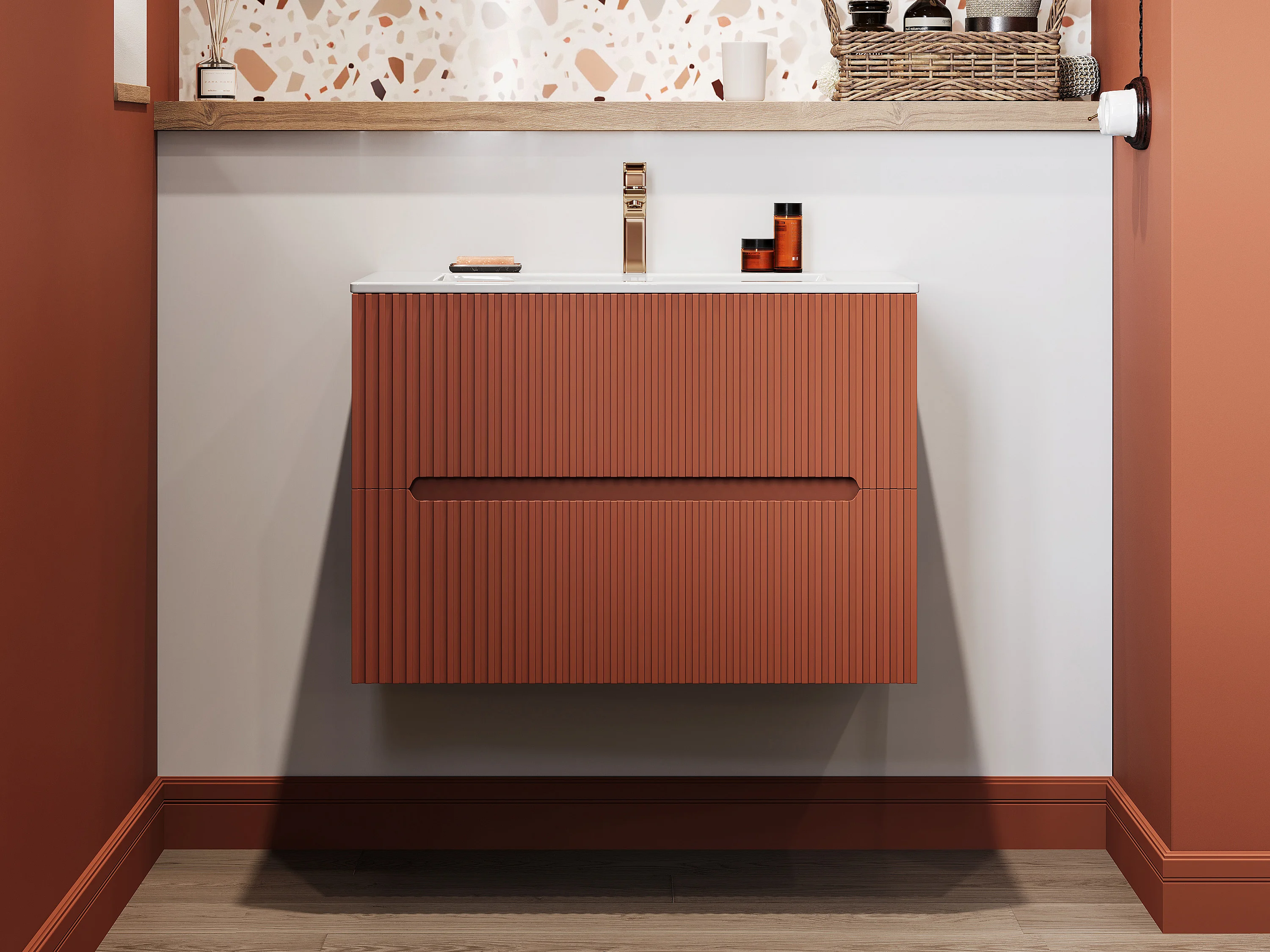 Móvel de casa de banho suspenso com lavatório embutido terracota listrada 80 cm - PAVANI