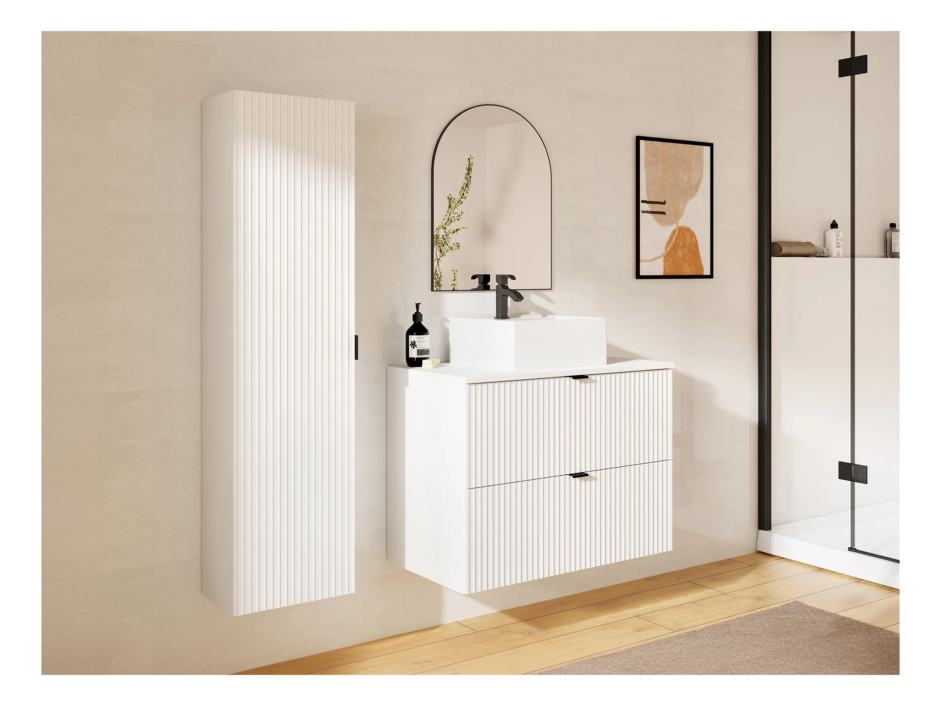 Móvel de casa de banho suspenso estriado com lavatório de pousar e coluna branco fosco 80 cm - ZEVINI