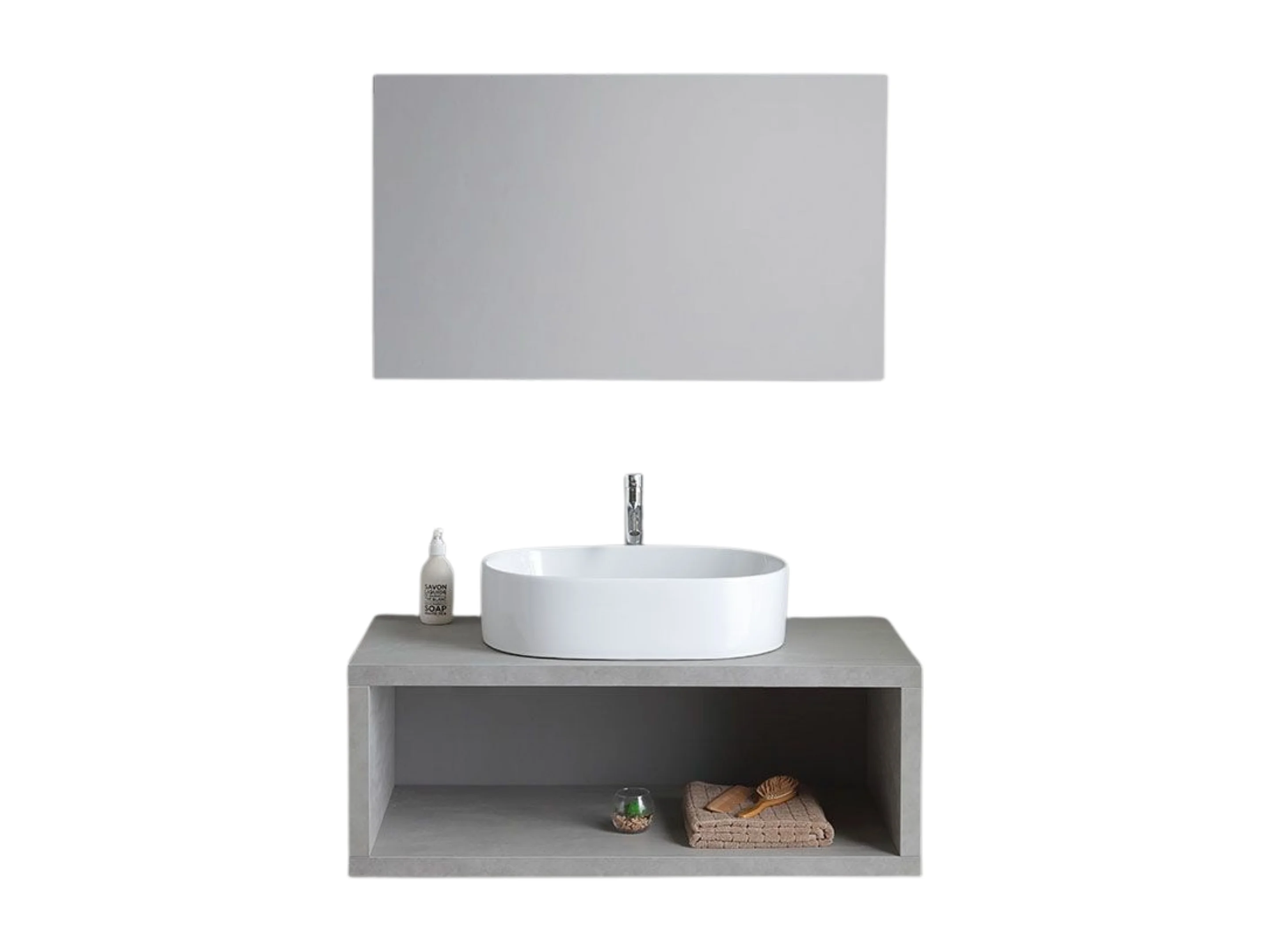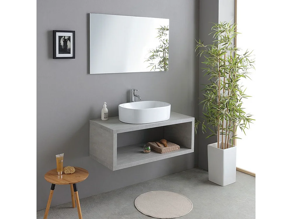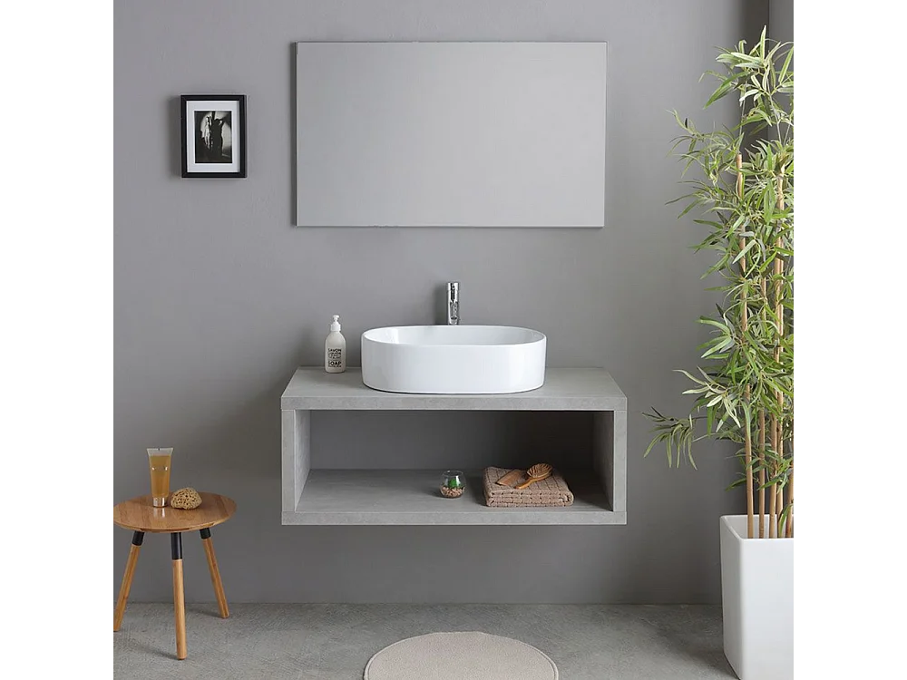 Móvel de casa de banho suspenso "Samos" 100 cm cinzento com lavatório oval em cerâmica e espelho simples