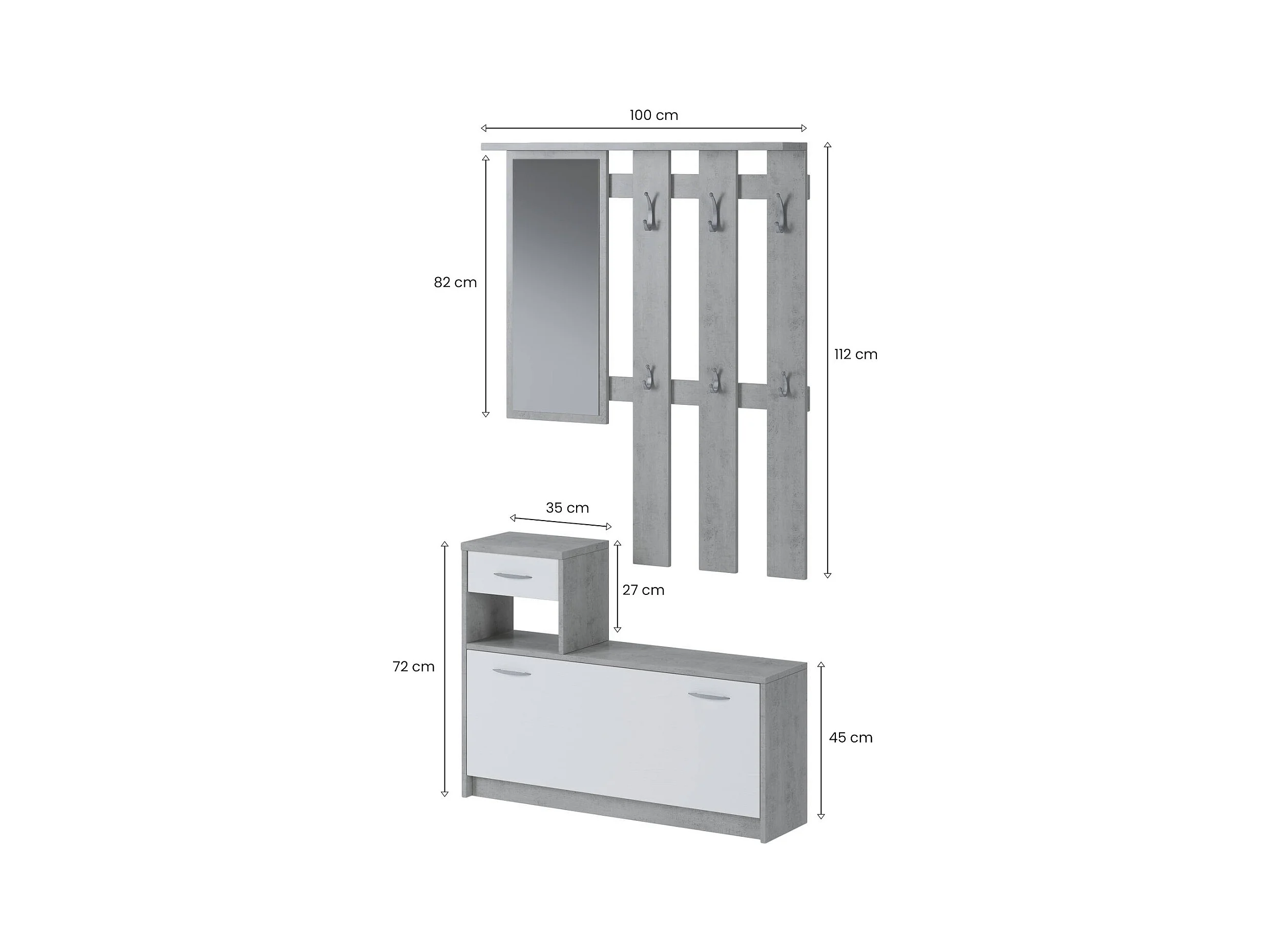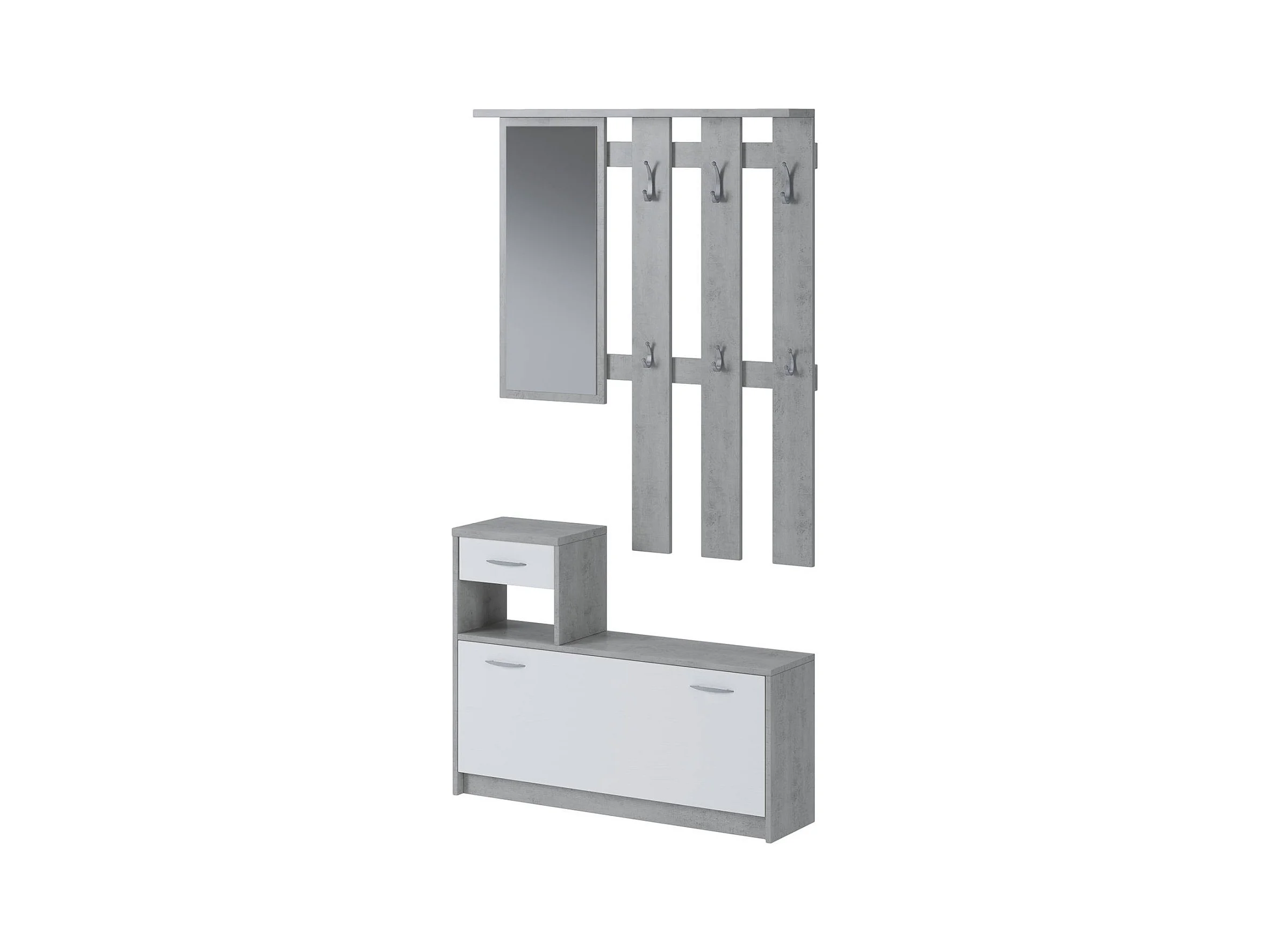 Móvel de entrada 0, Entrada moderna com espelho, Armário com sapateira, Armário multifuncional, 100x25h180 cm, Branco e Cimento