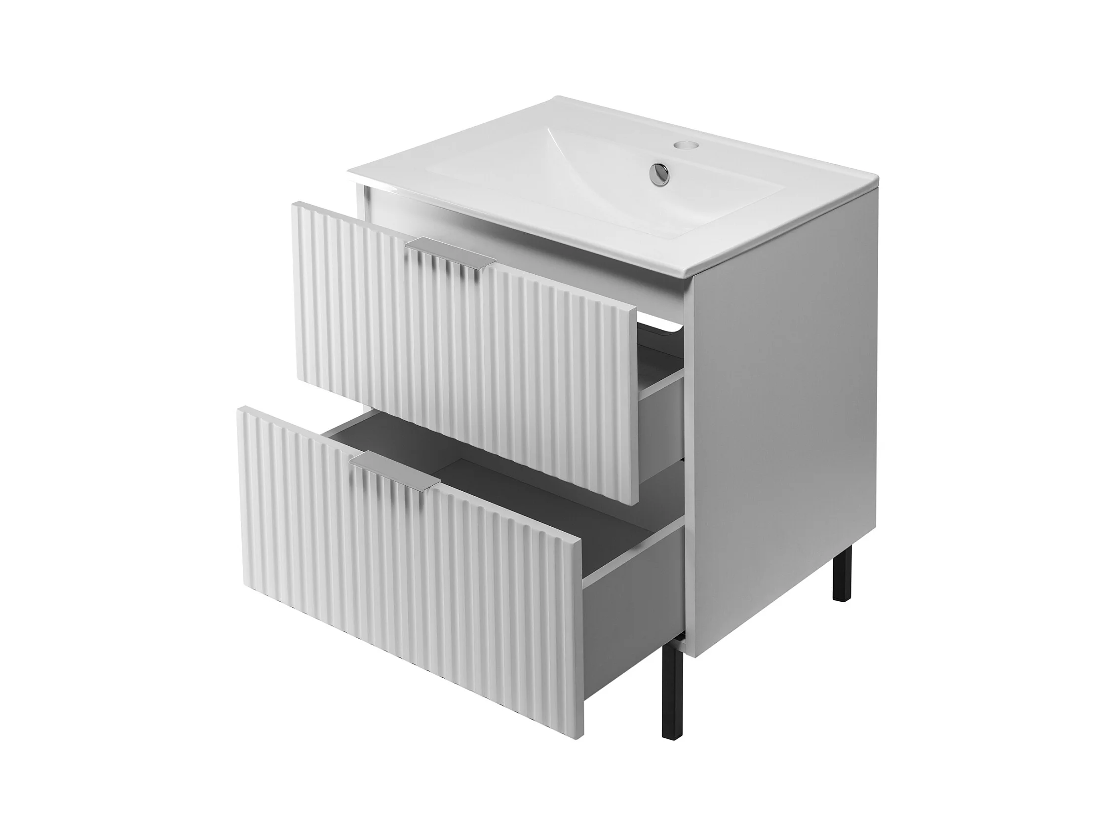 Móvel de lavatório, branco, 60 x 77 x 46 cm, puxador prateado, pés pretos, sem bancada