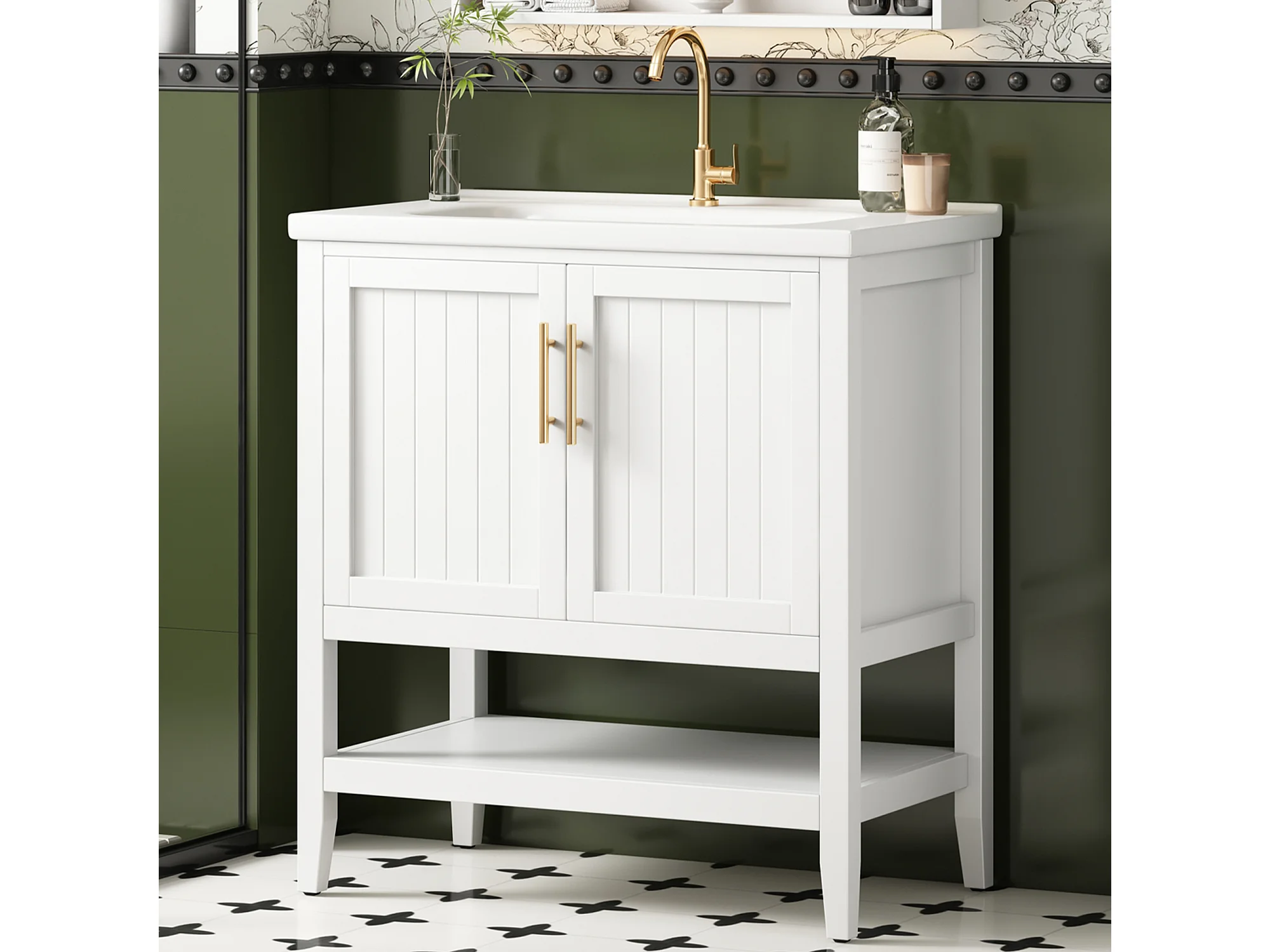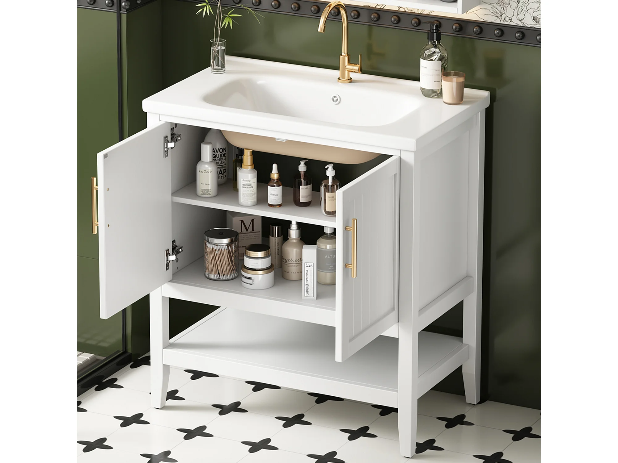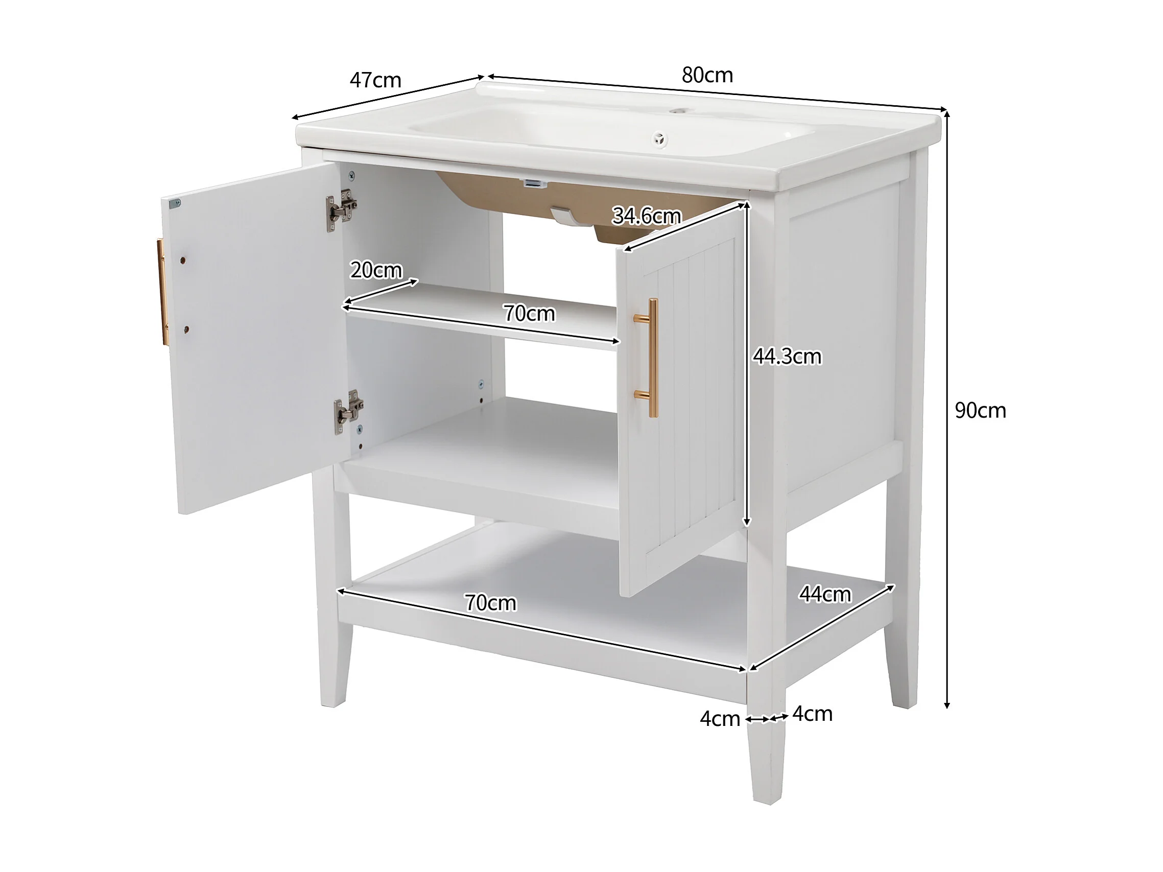 Móvel de lavatório com lavatório embutido, 2 portas incluídas, 80x47x90cm