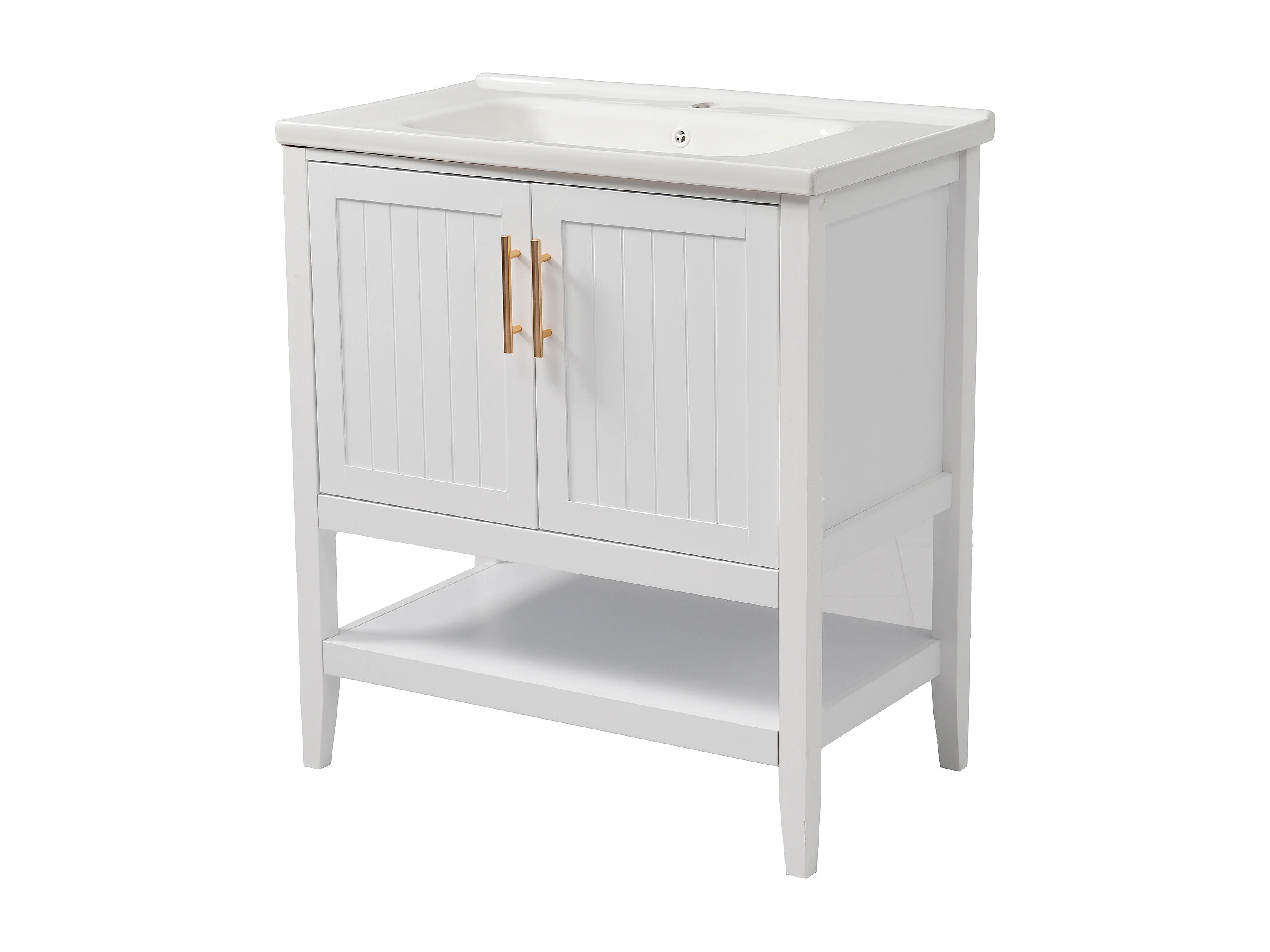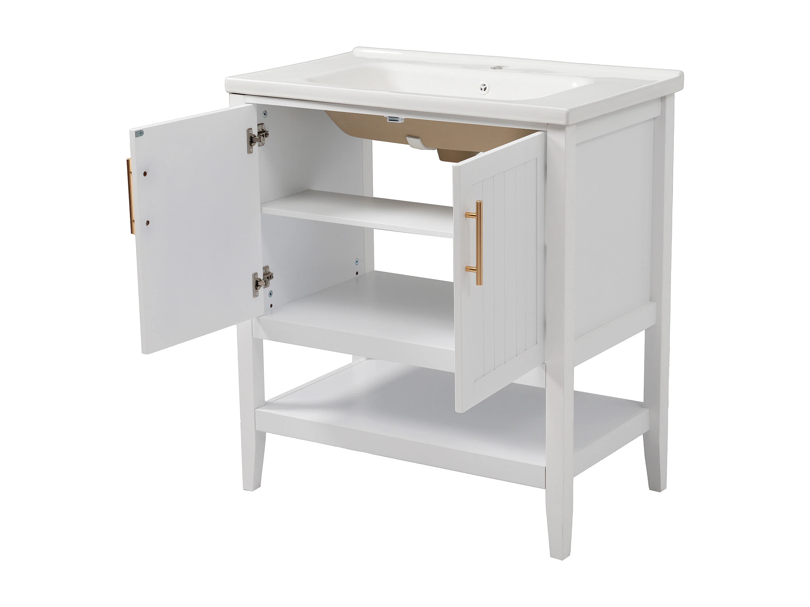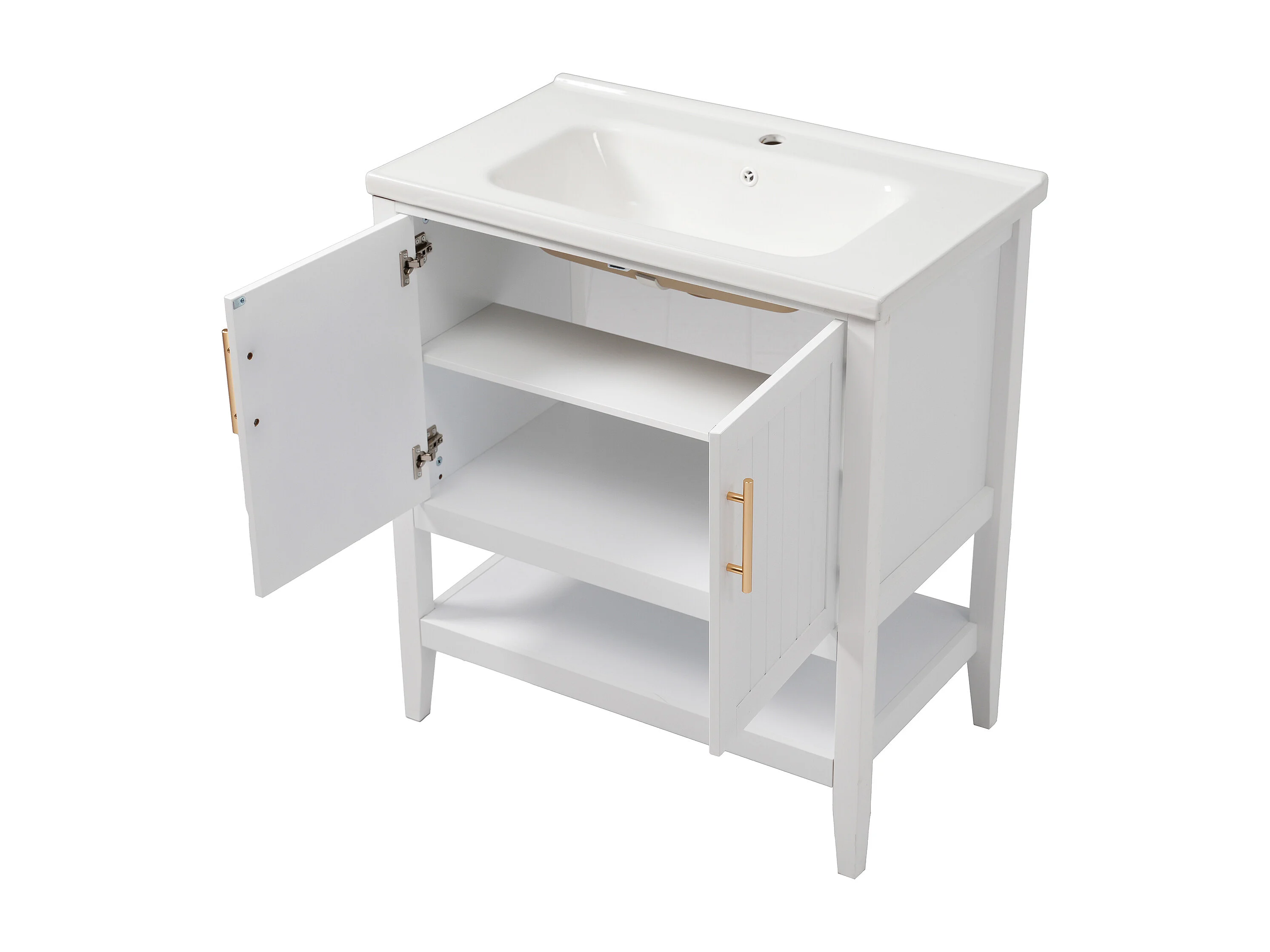 Móvel de lavatório com lavatório embutido, 2 portas incluídas, 80x47x90cm