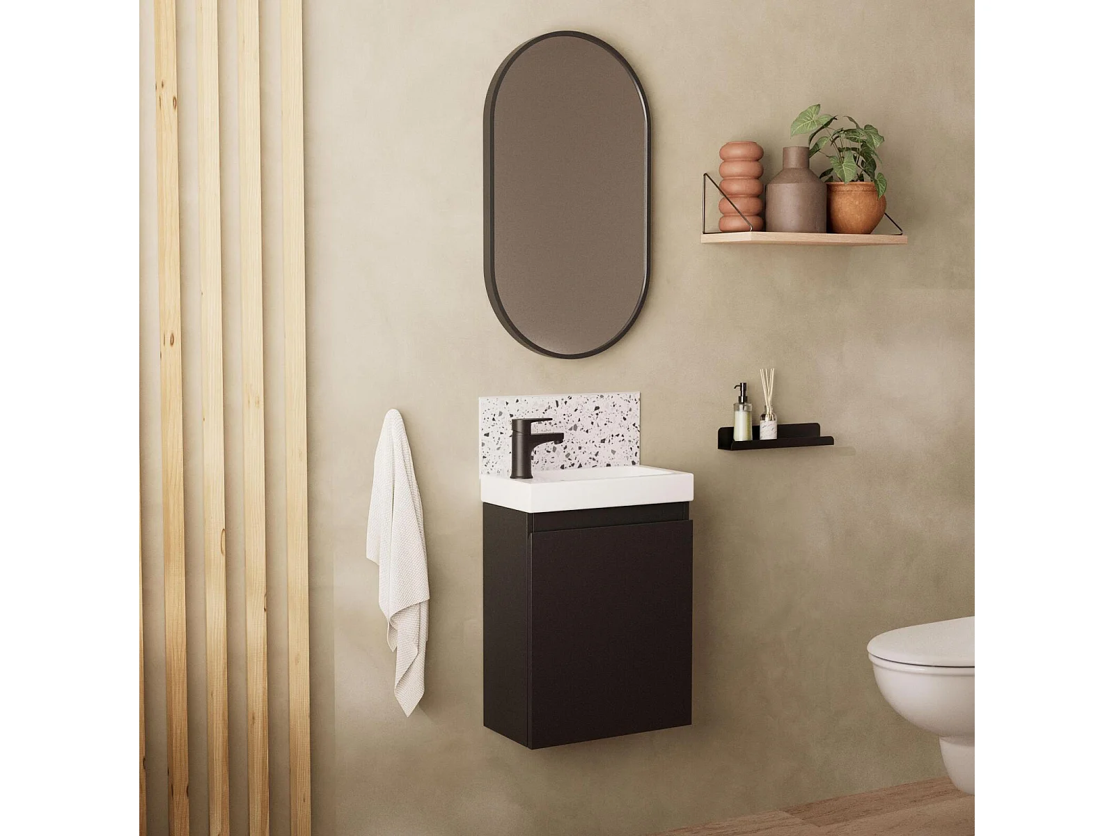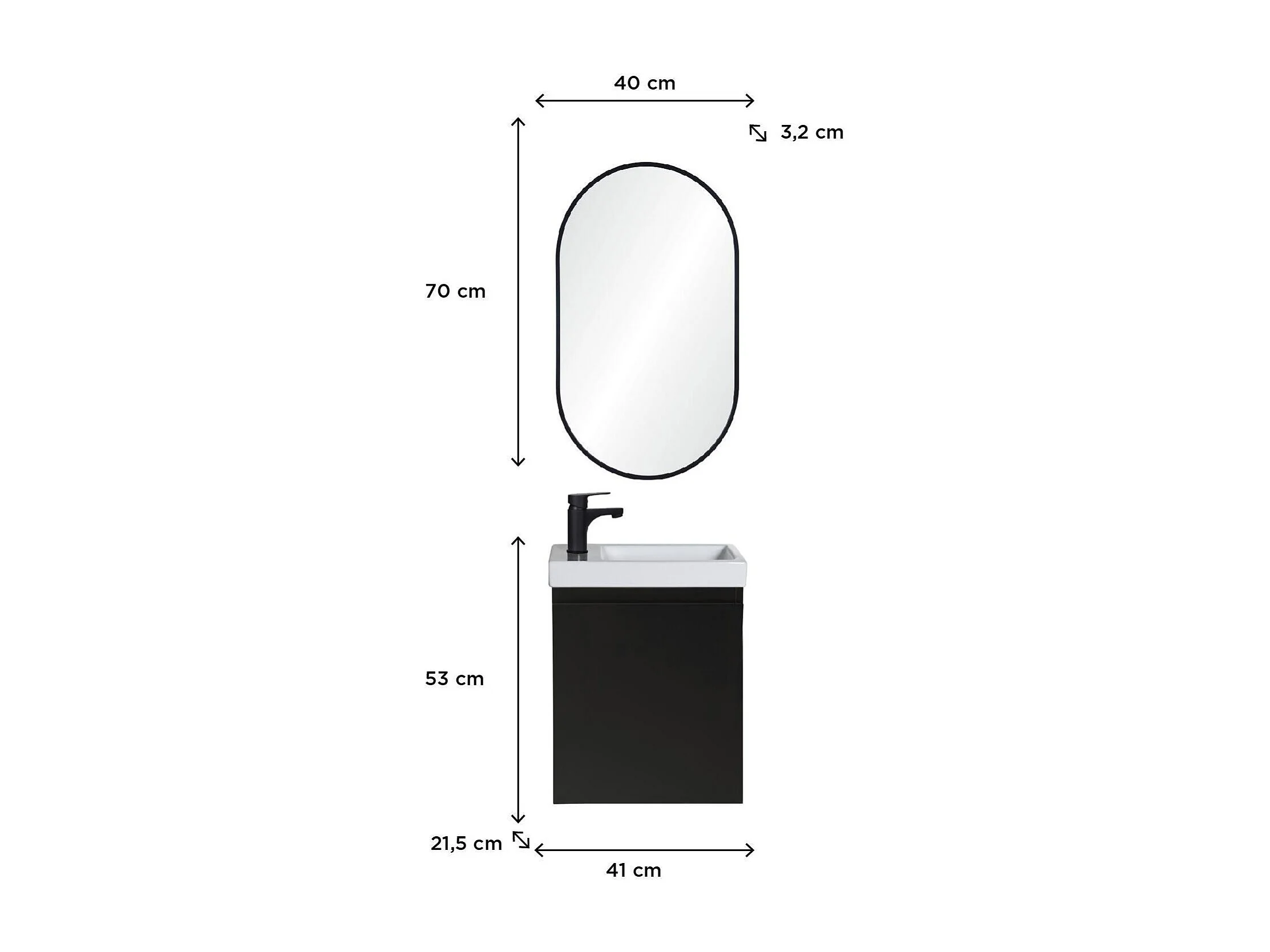 Móvel de toucador LISA + espelho oval + torneira preta