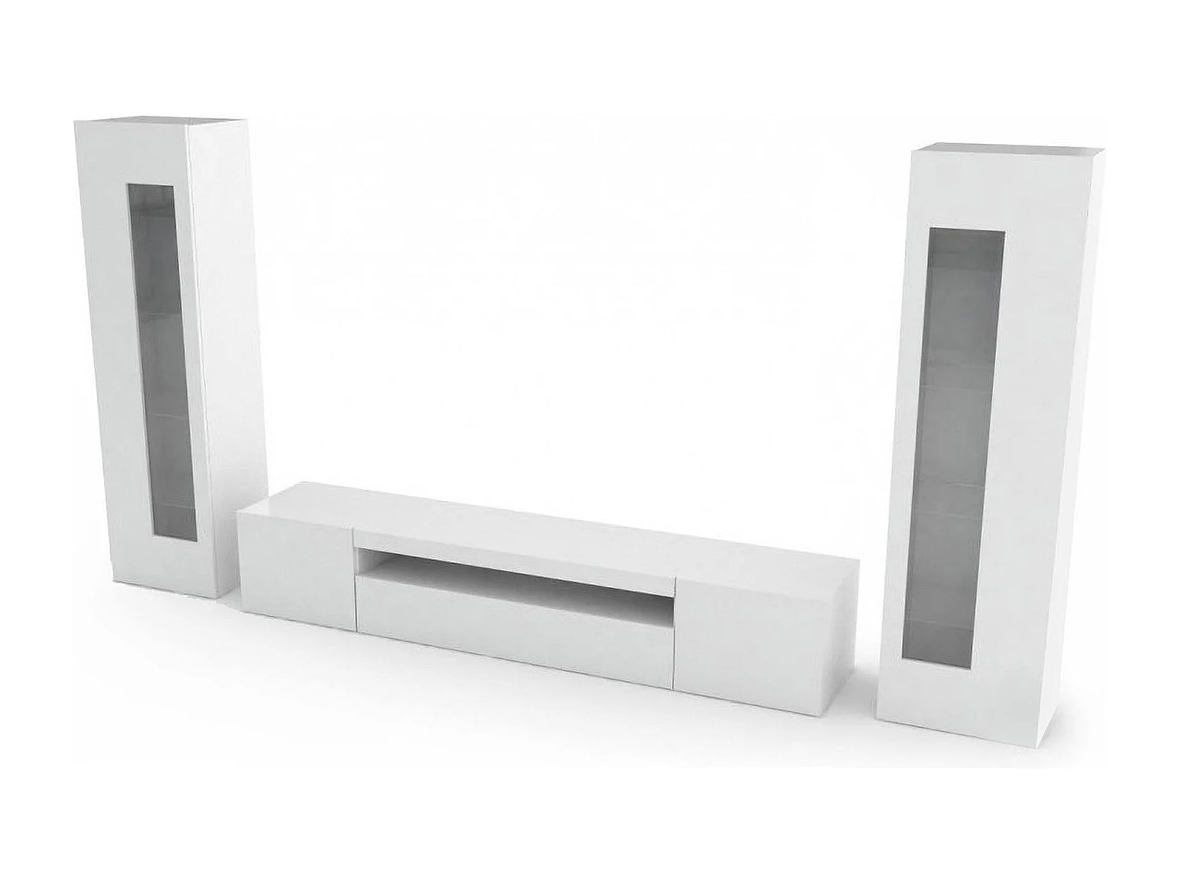 Móvel de parede Enzo, móvel de sala de TV, móveis de sala multiuso, 100% fabricado na Itália, 290x40h162 cm, branco brilhante