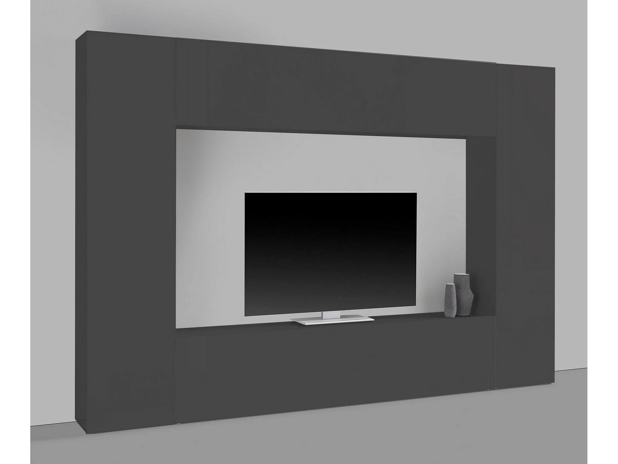 Móvel de parede Luigi, conjunto de sala de TV com 4 portas, mobiliário de sala multiuso, 100% Fabricado em Itália, 260x30h180 cm, Antracite