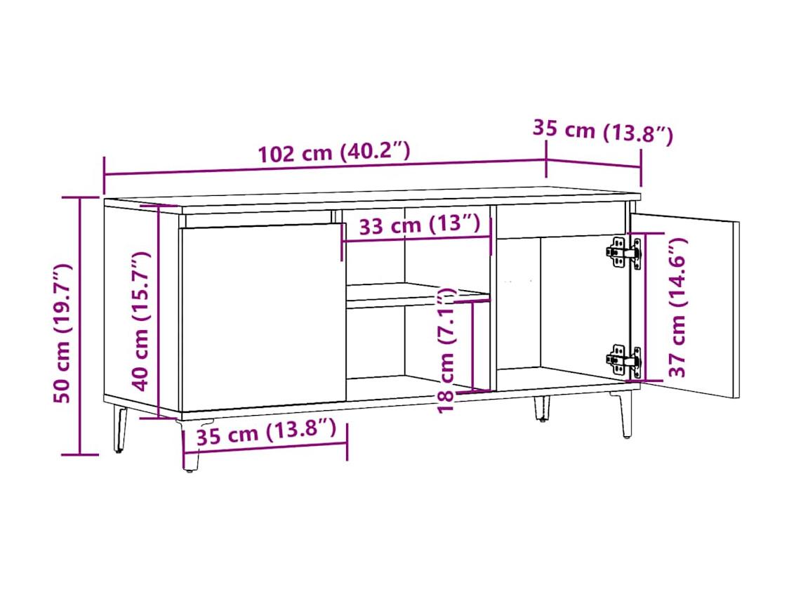 Móvel de TV 100x35x50cm derivados madeira/metal carvalho sonoma