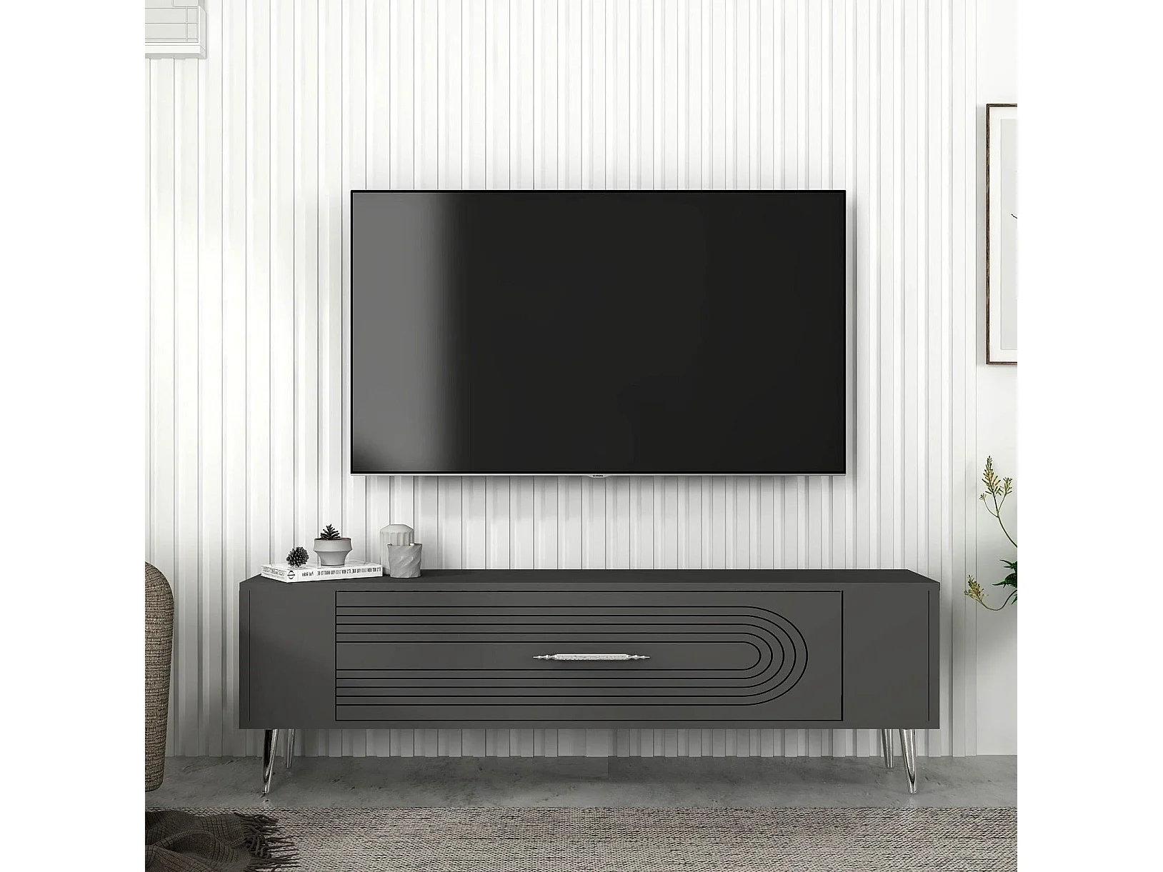 Móvel de TV – 150 cm x 44,6 cm x 29,6 cm – Antracite e Prata – Painel de partículas