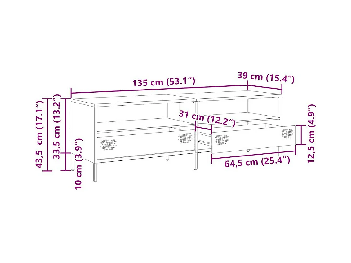 Móvel de TV 135x39x43,5 cm aço laminado a frio amarelo mostarda