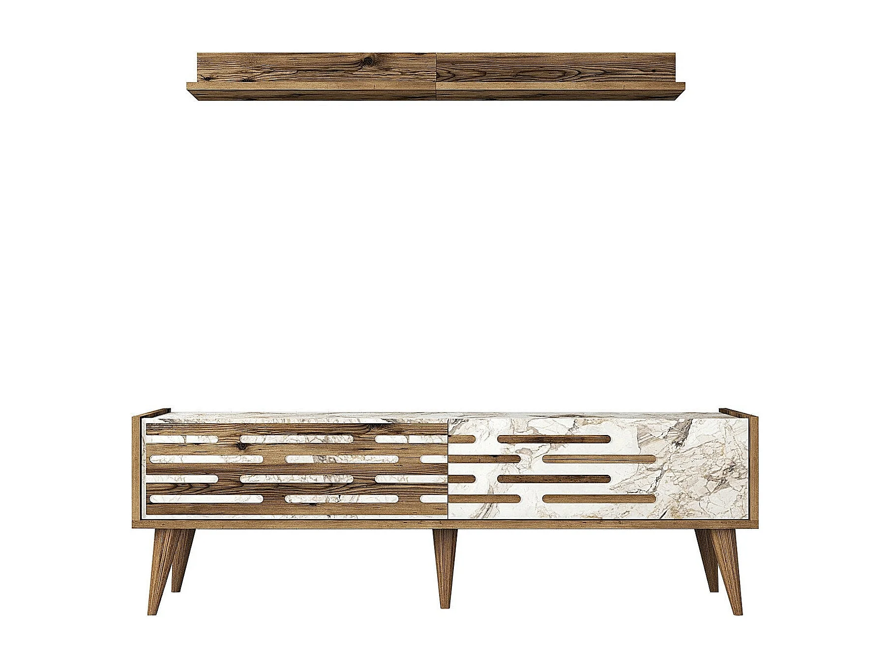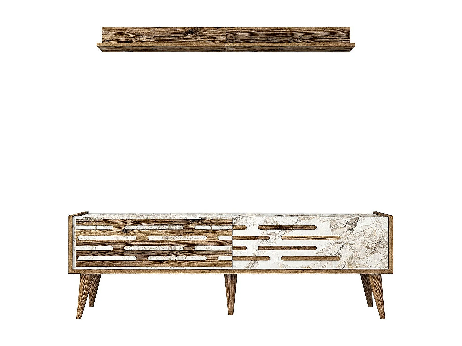 Móvel de TV – 140 cm x 35 cm – Nogueira e Branco/Mármore – 100% painel de partículas revestido a melamina