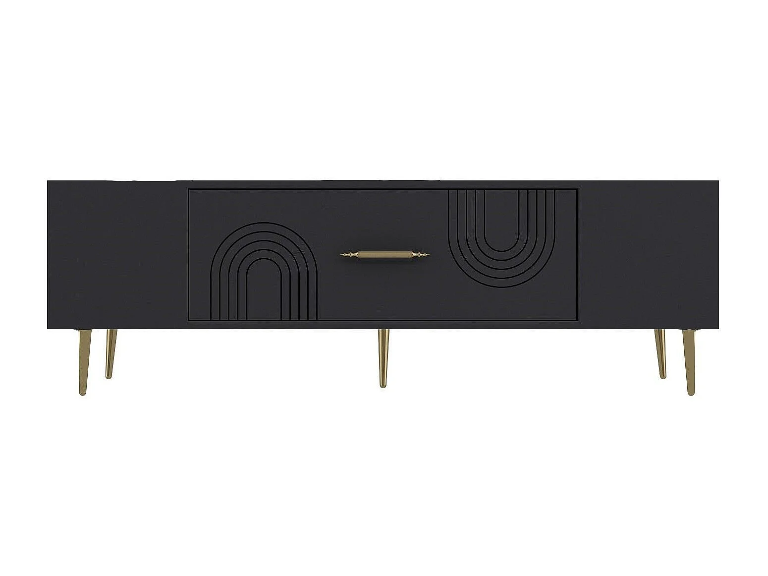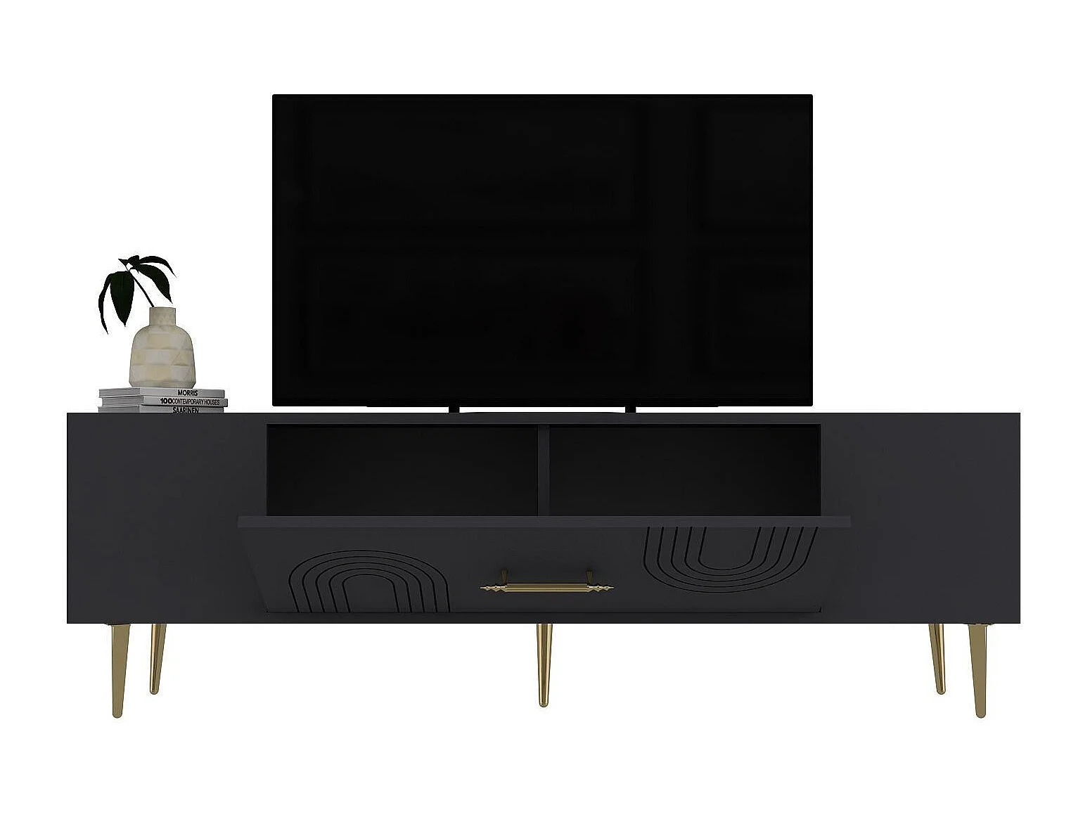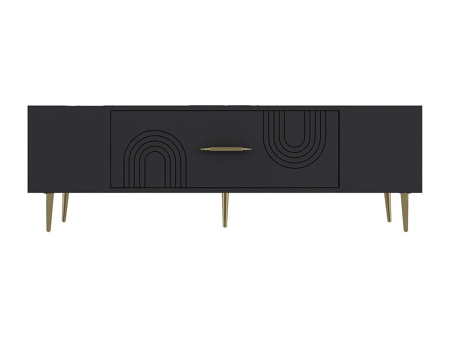 Móvel de TV moderno – 150 cm x 48,2 cm x 35 cm – Antracite e Dourado – Painéis de partículas revestidos de melamina