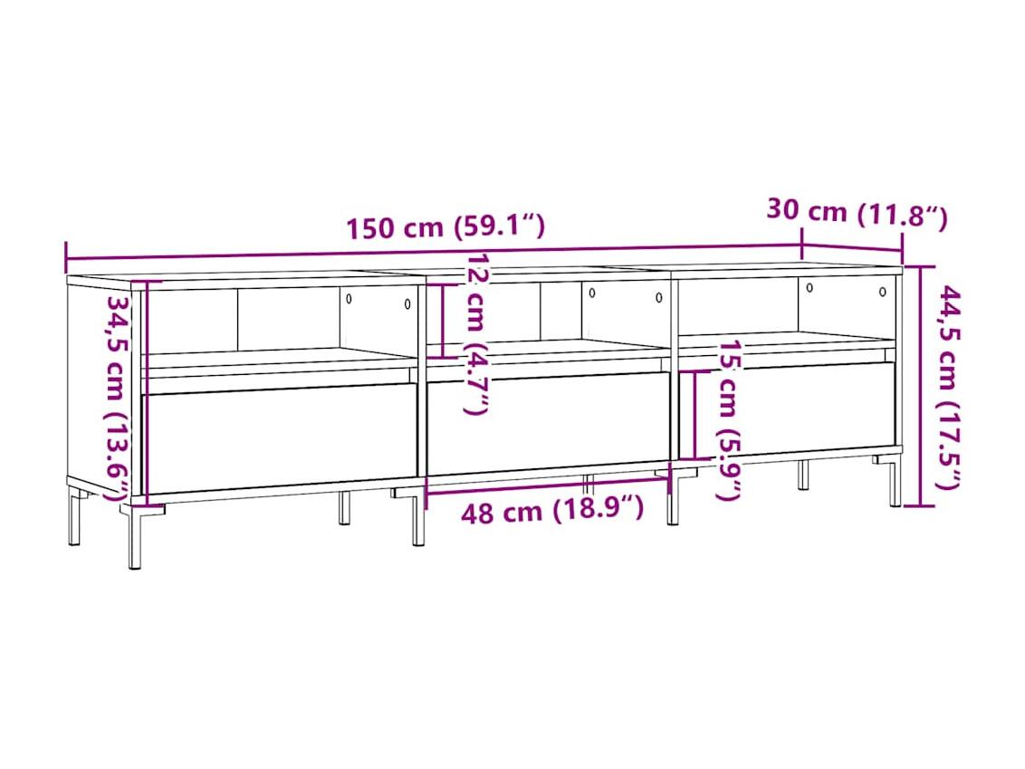 Móvel TV 150x30x44,5 cm derivados de madeira carvalho artisiano