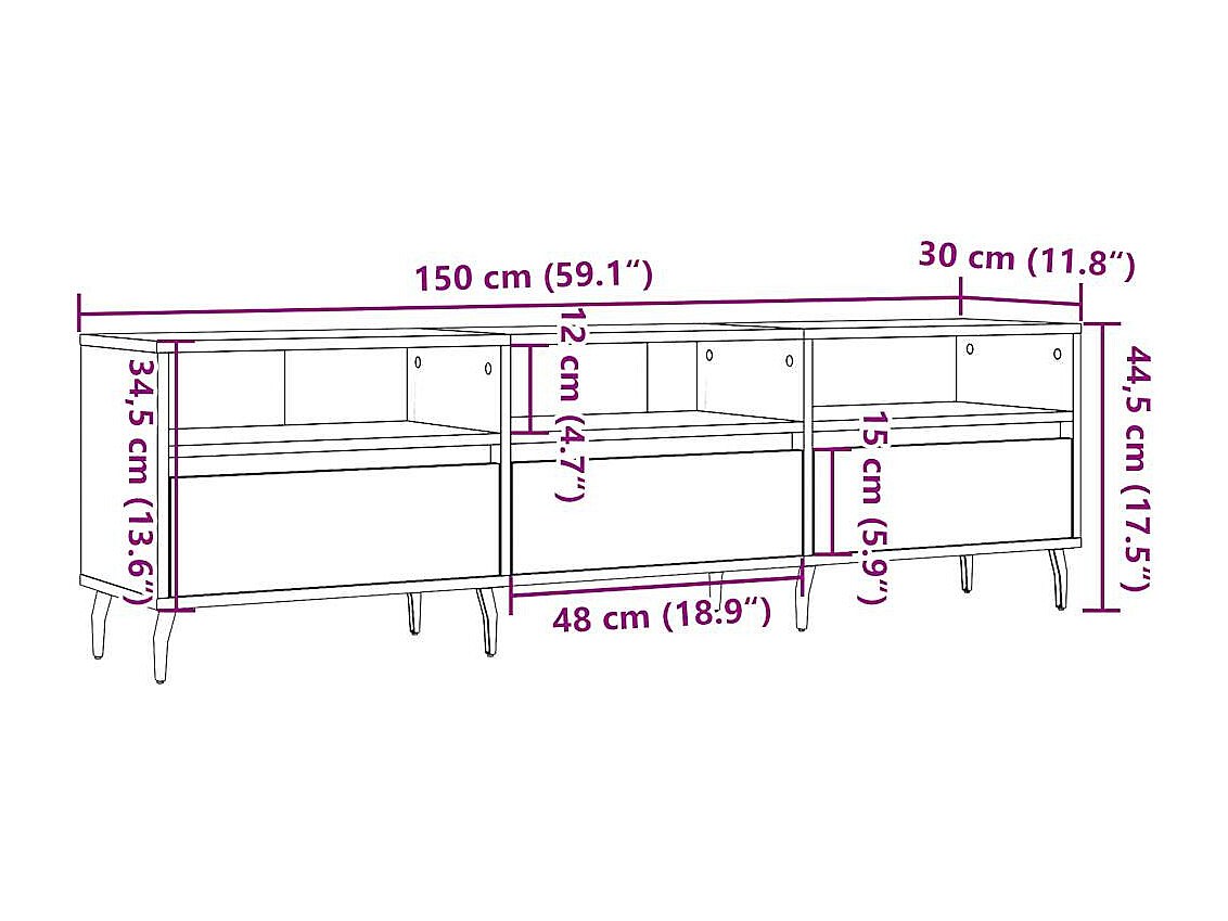 Móvel de TV 150x30x44,5 cm derivados de madeira carvalho fumado