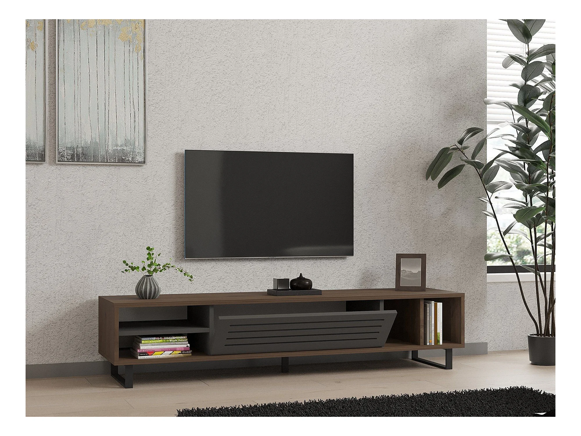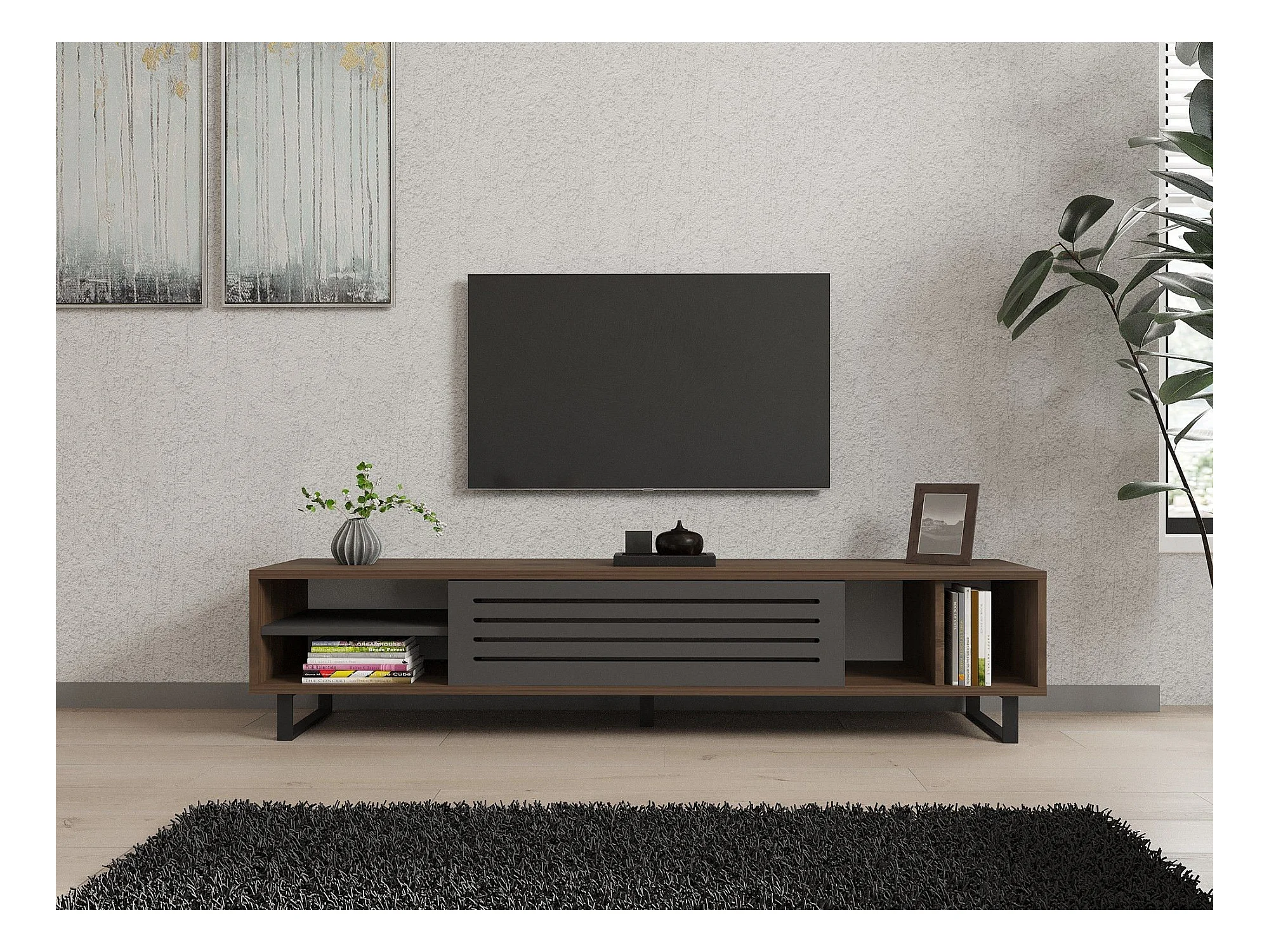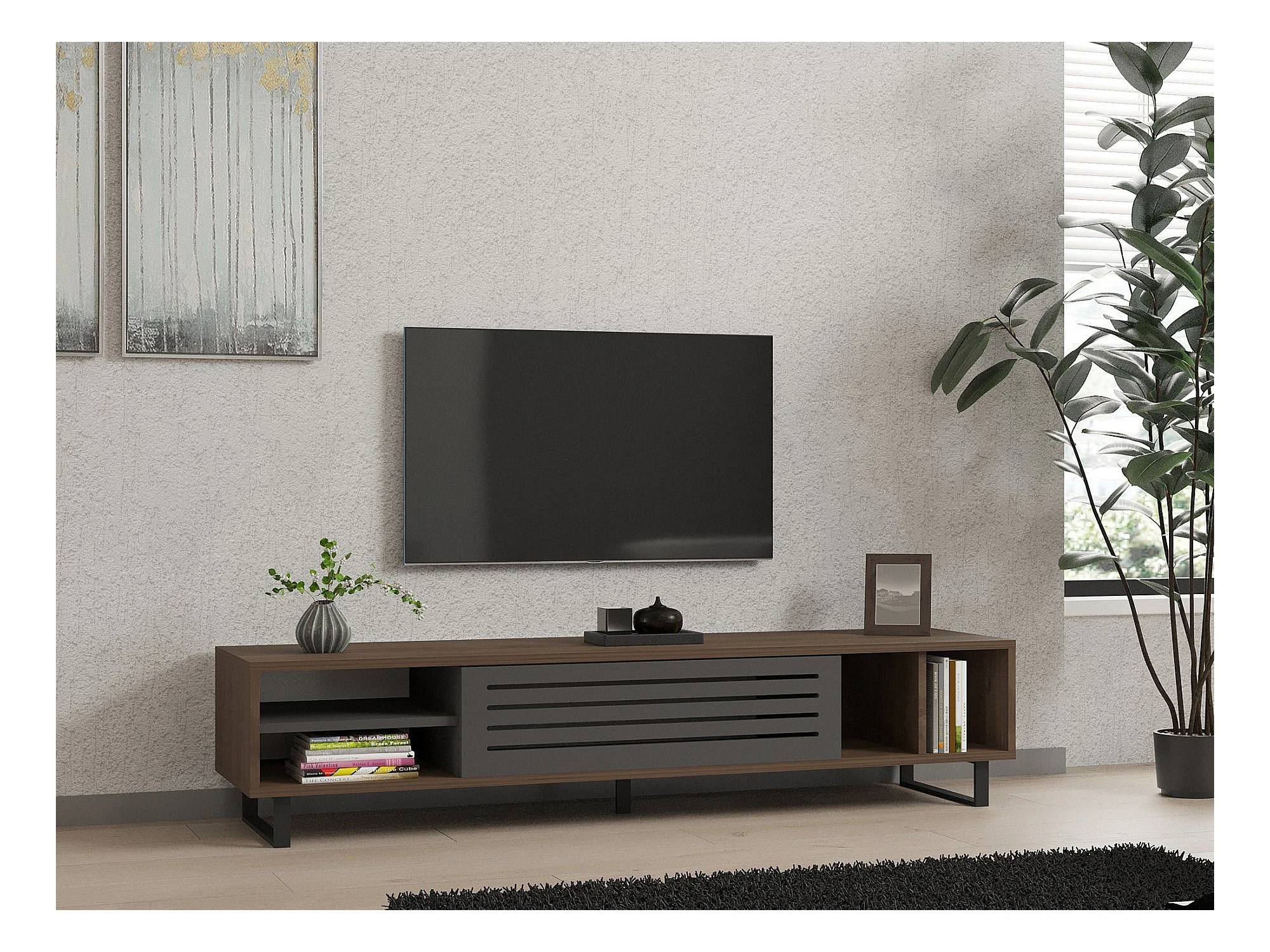 Móvel de TV – 180 cm x 42 cm x 35 cm – Antracite e Nogueira – Painéis de partículas revestidos a melamina