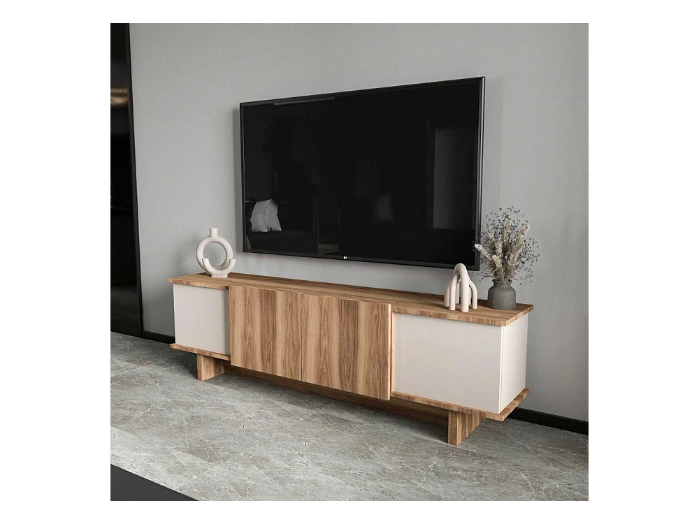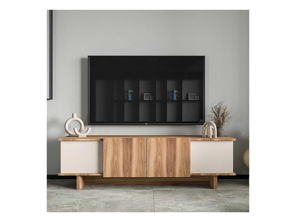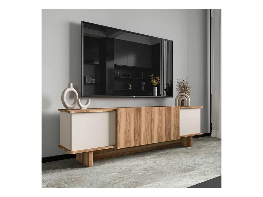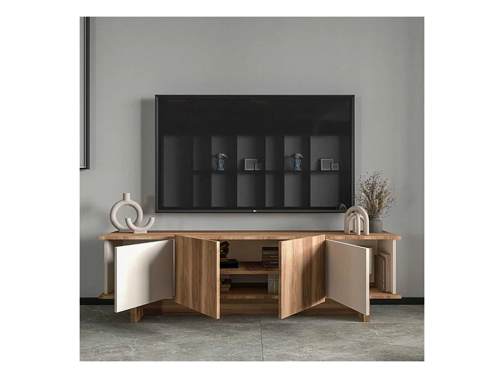 Móvel de TV – 180 x 50 x 33 cm – Bege e Nogueira – Aglomerado revestido em melamina
