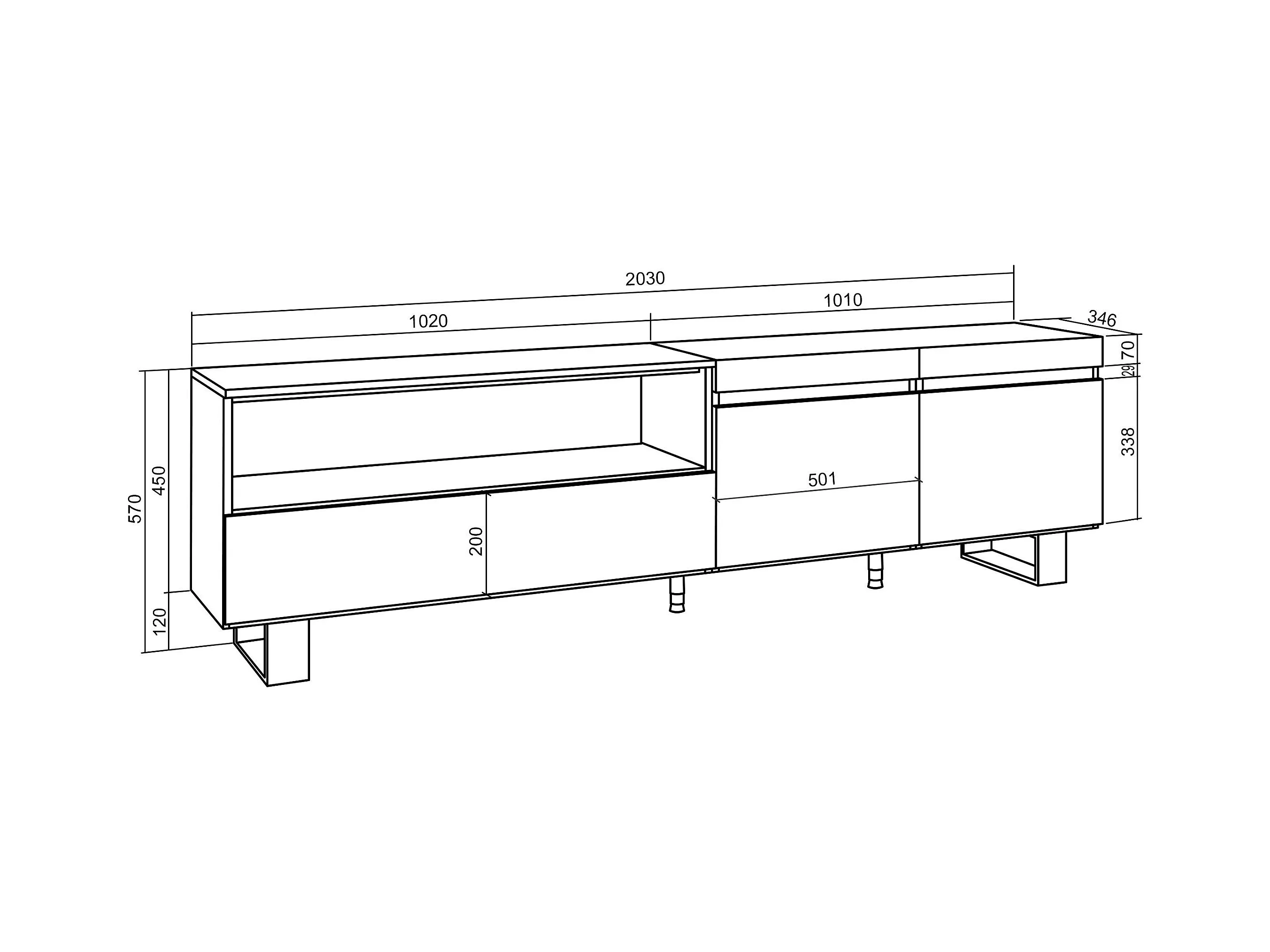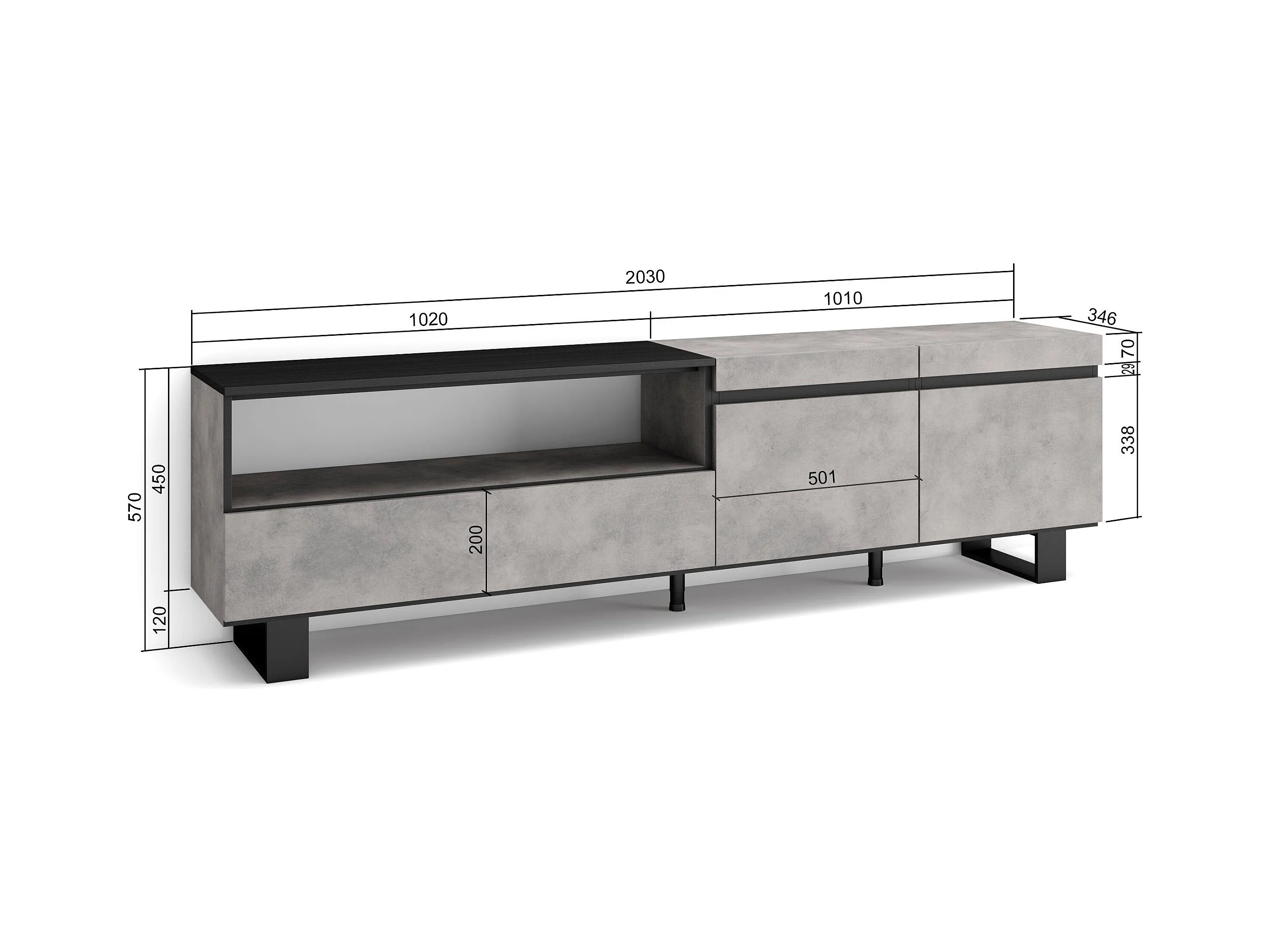 Móvel de TV, 200x35x57cm, Para televisores até 80", Design industrial, Cimento